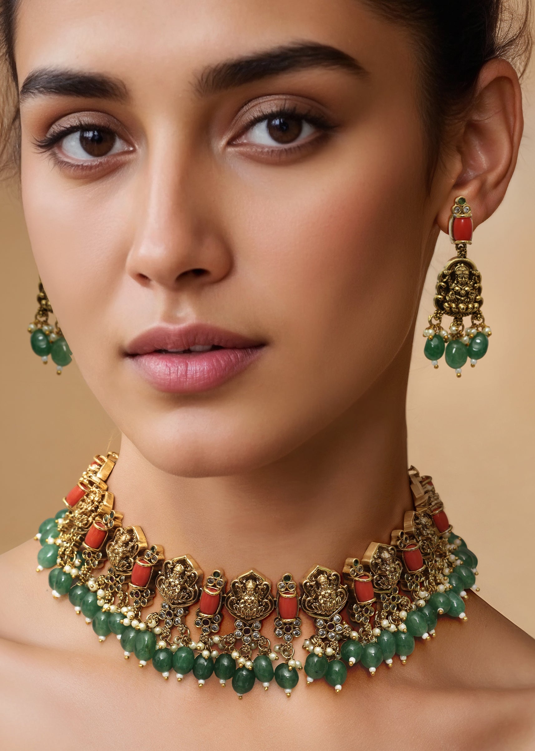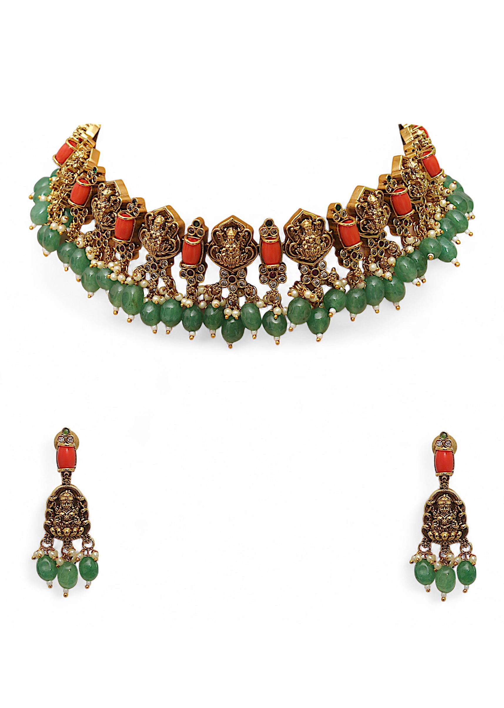 Complements richly embroidered or solid-colored outfits, adding depth and vibrance to the neckline.Fit Tips: Evenly strung beads ensure a balanced drape, keeping the necklace and earrings comfortable and secure during wear.