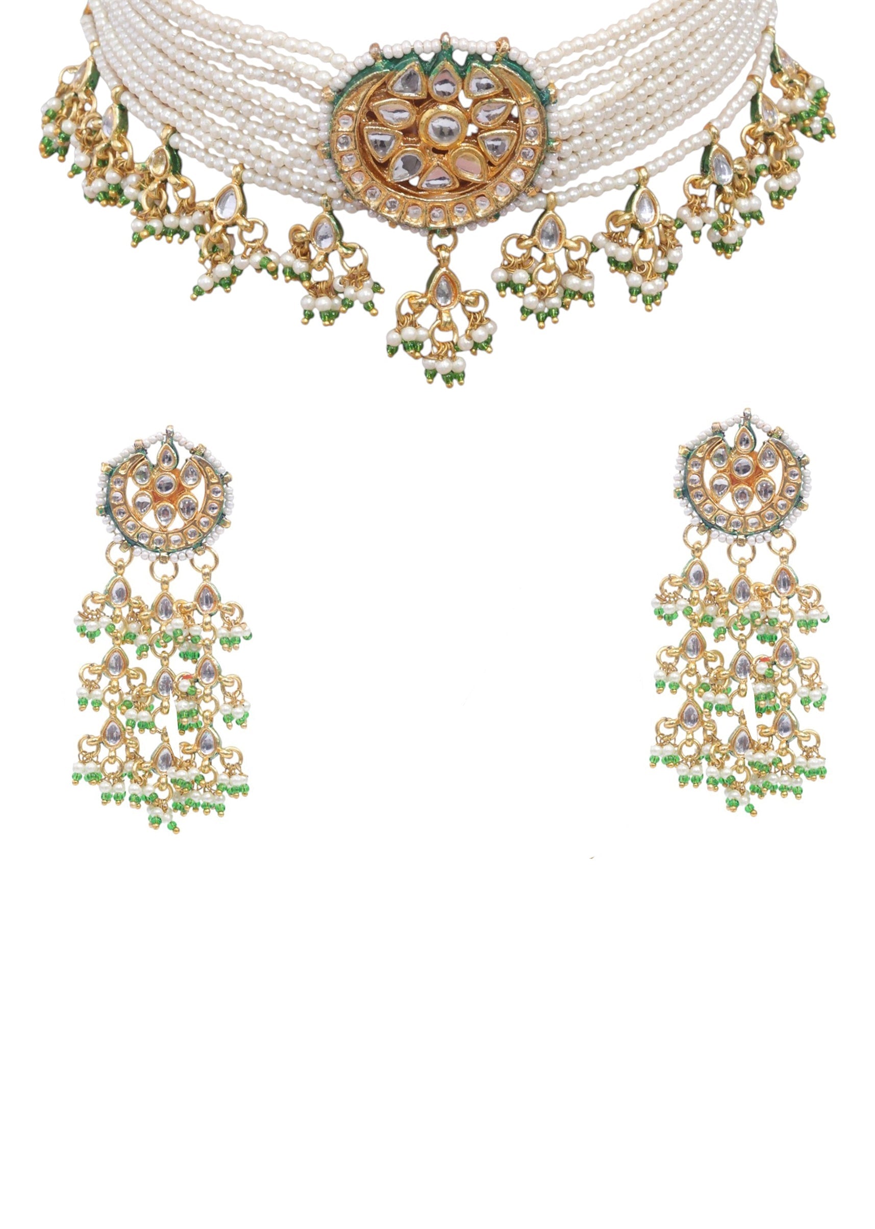 A multi kundan necklace set featuring intricately arranged kundan stones and elaborate craftsmanship, exuding royal elegance. Perfect for adding a striking and sophisticated touch to bridal, festive, or ethnic ensembles. Awarded as the Most Trusted Brand, we're delivering styles you love, just as promised.