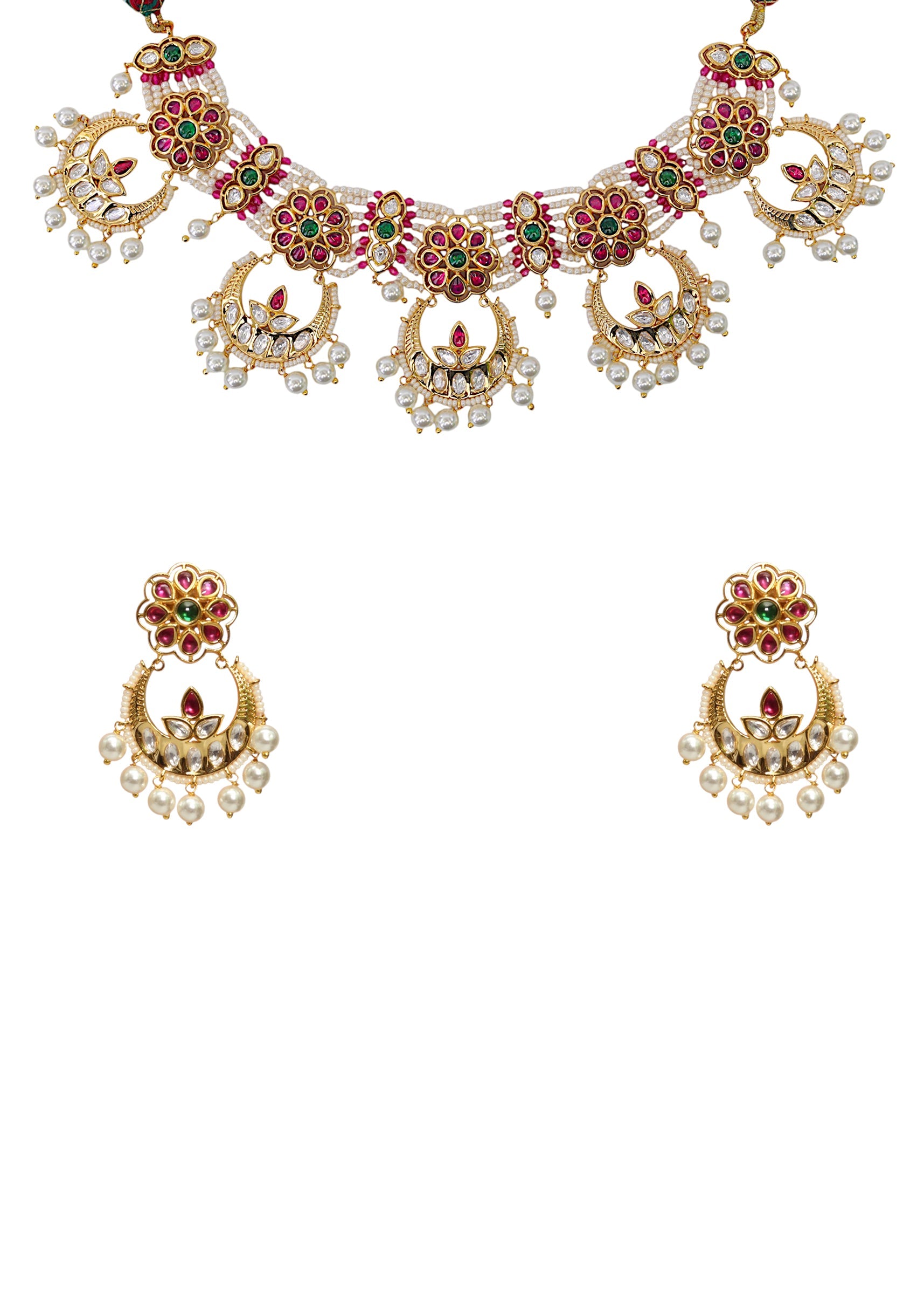 Multi Rajwadi Kundan Necklace and Dangler Set