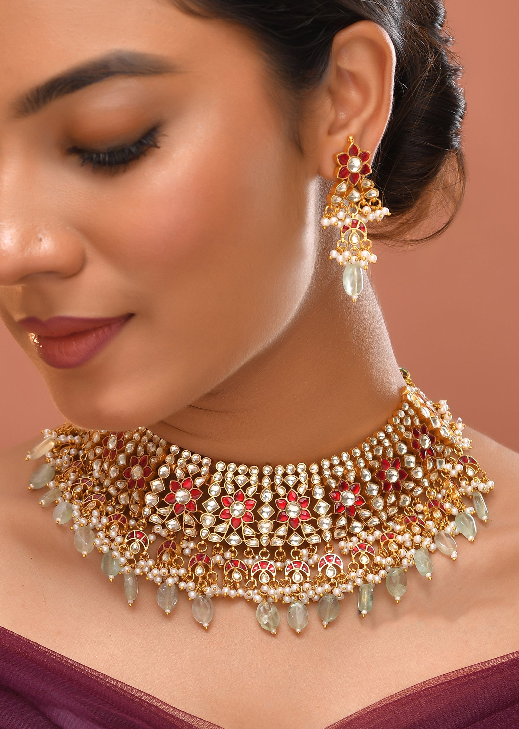 This multi red necklace set features intricate pachi kundan work that adds a vibrant and festive charm. Perfect for weddings, it is ideal for the bride’s mother or guests attending... More Product Details