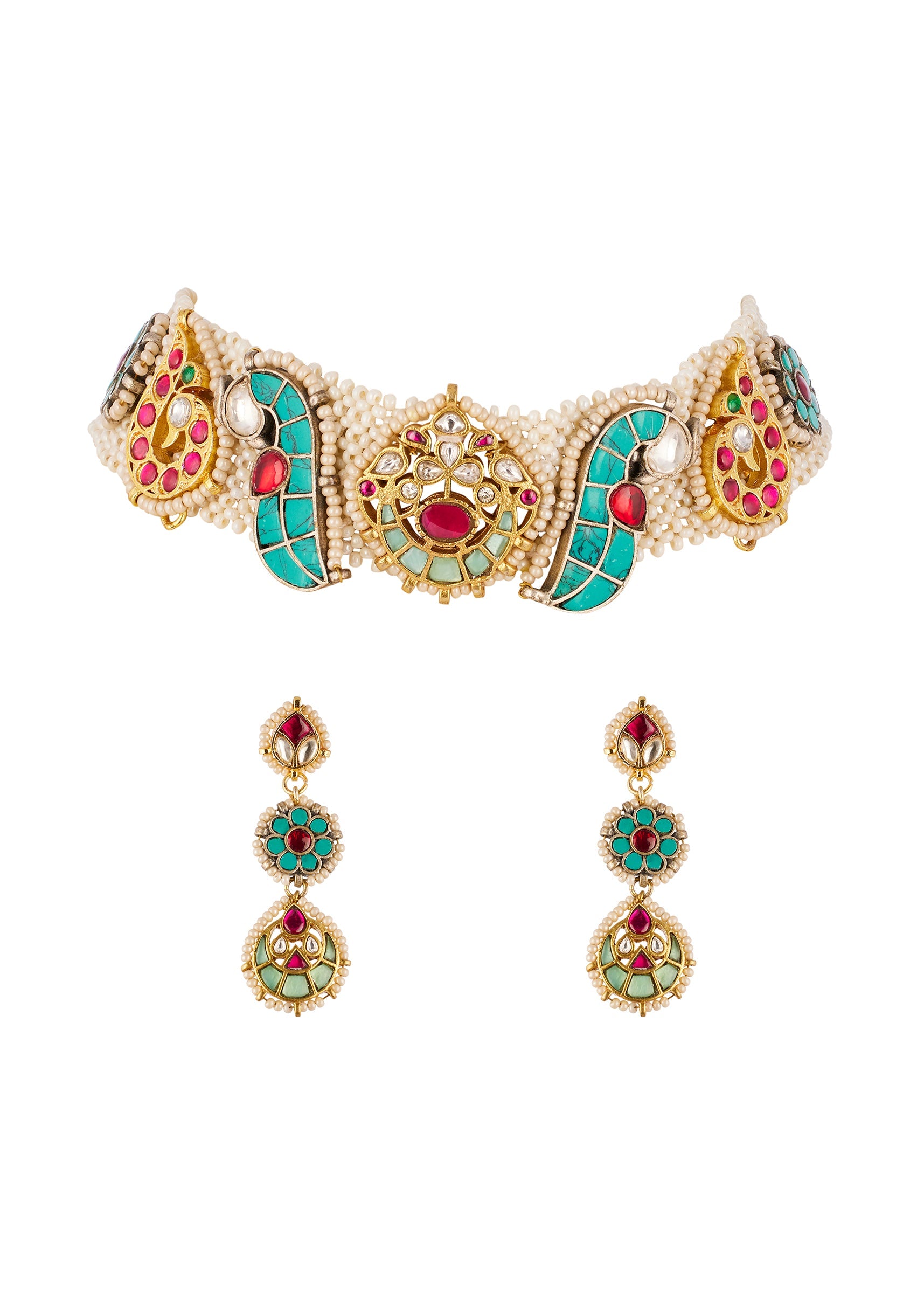 Multi Traditional Kundan Polki Necklace Set with Colored Stones