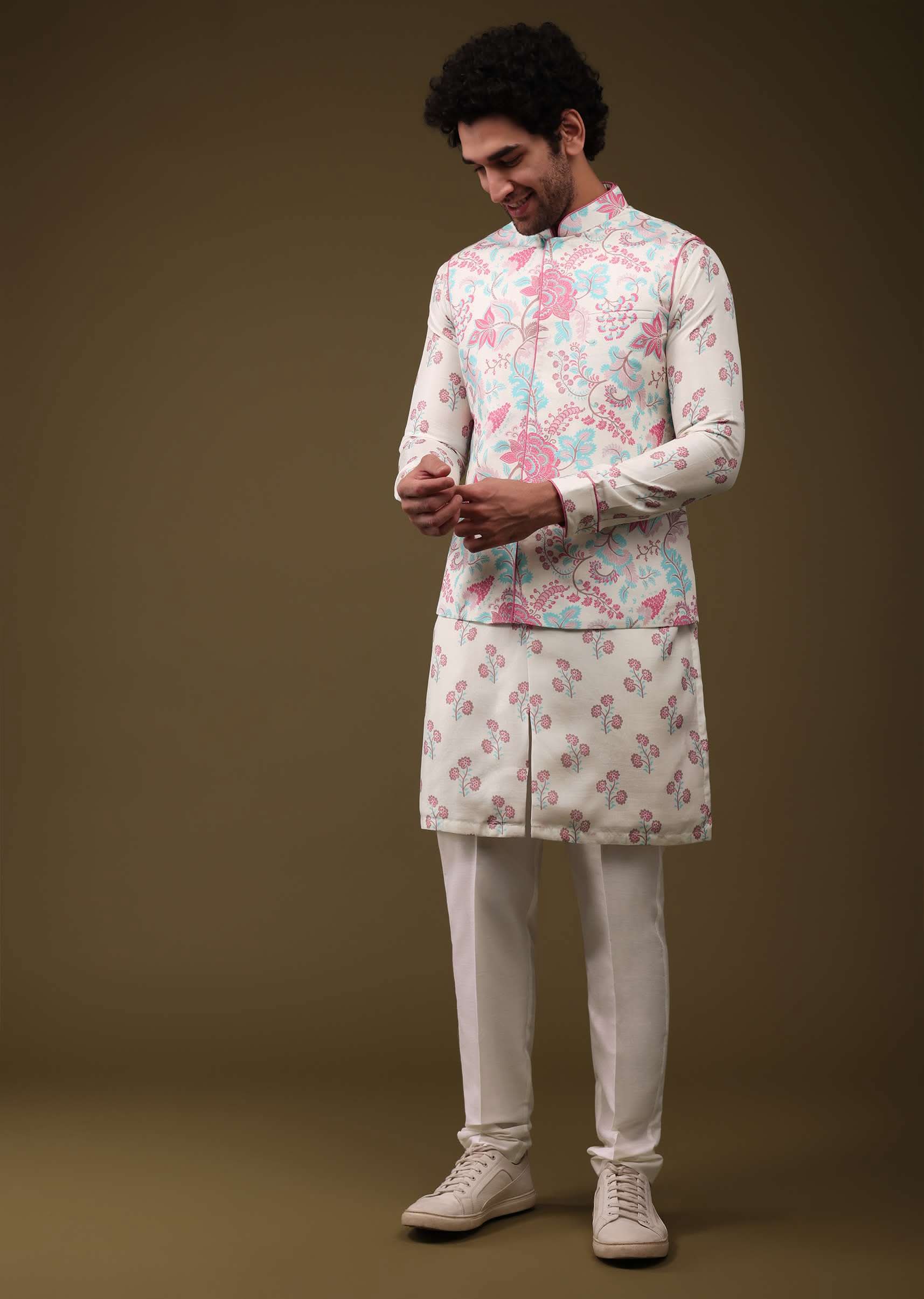 Multicolor Modern Floral Printed Jacket Kurta Set In Silk