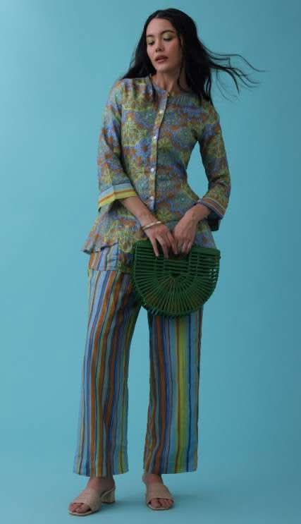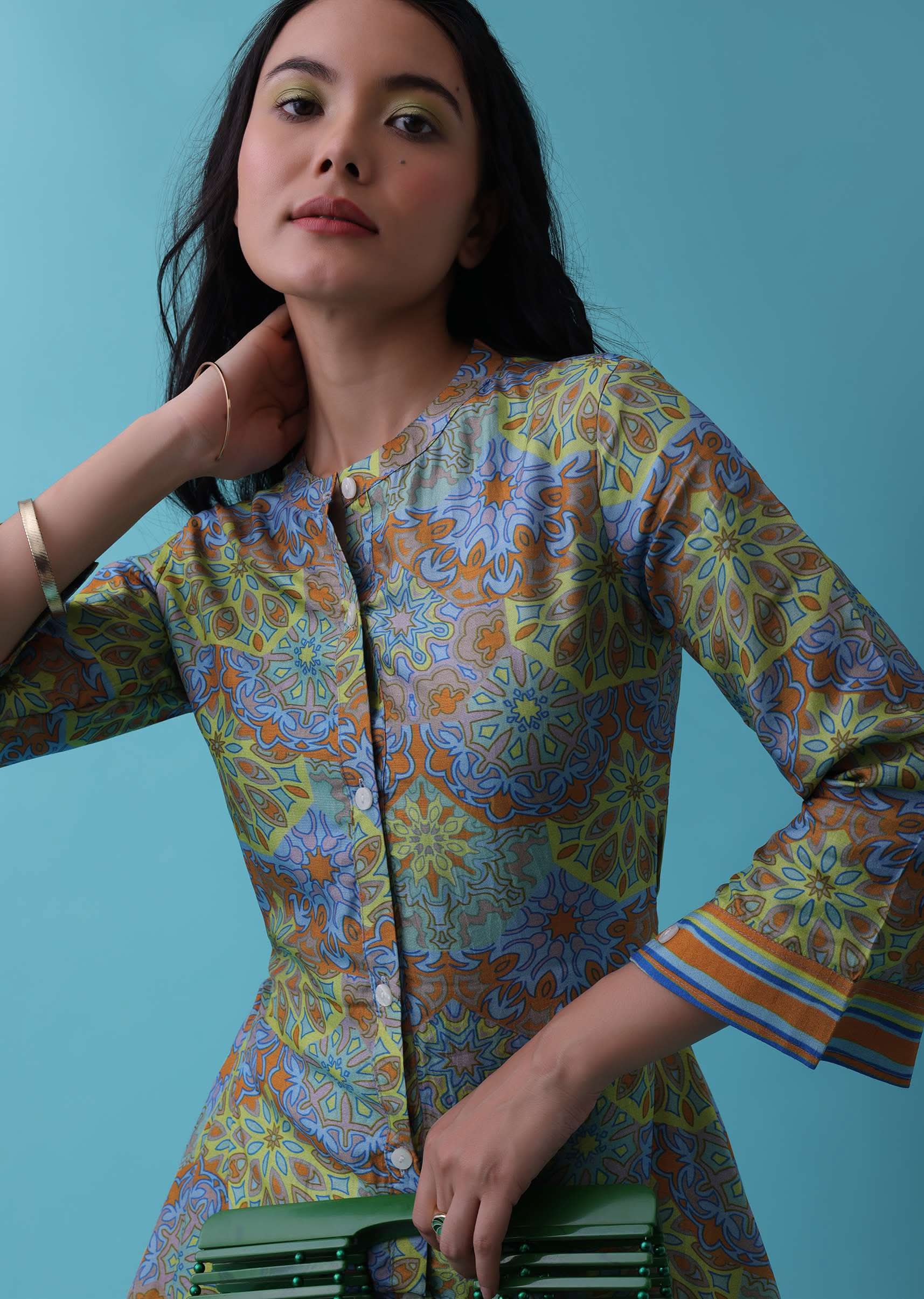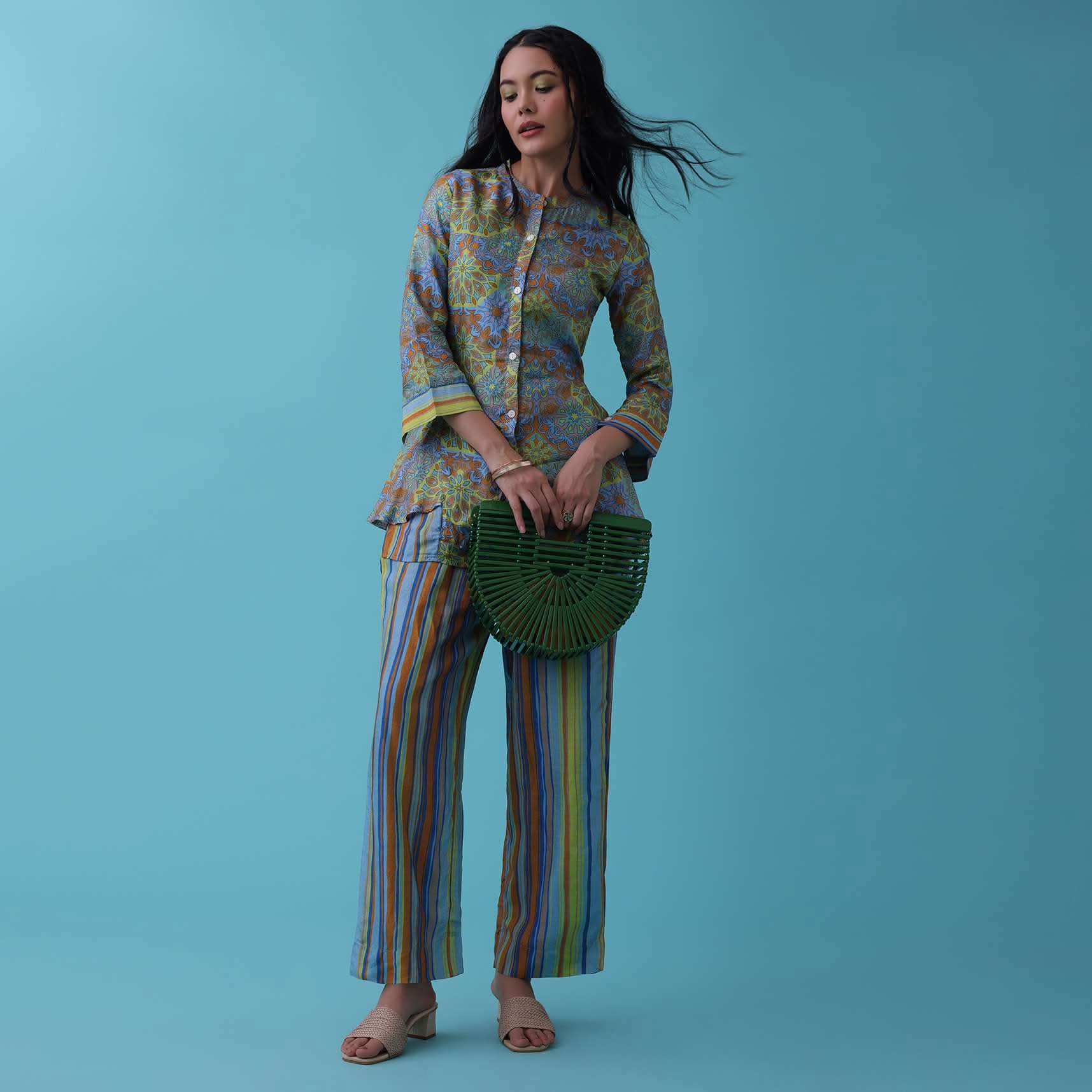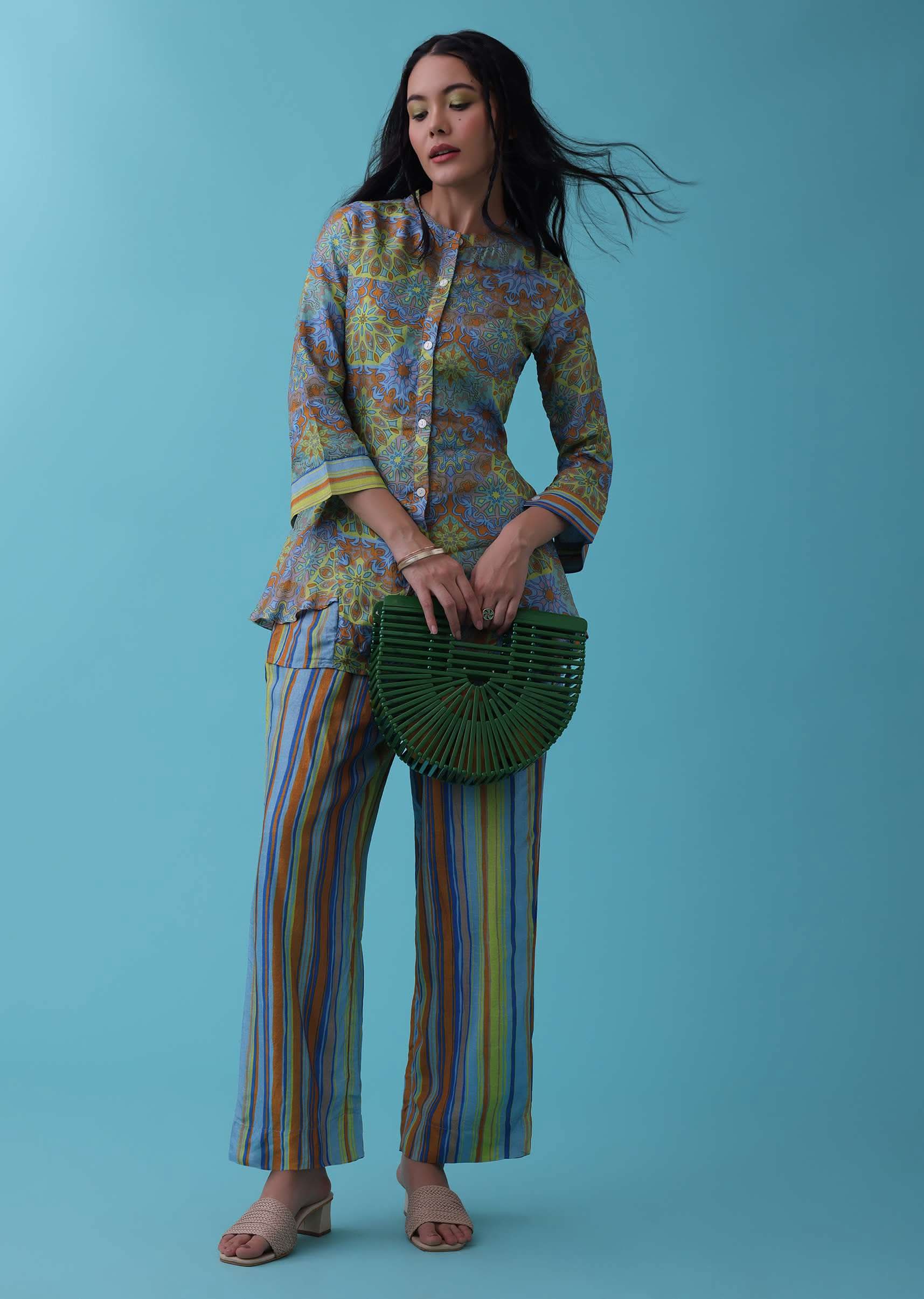 Multicolor Printed Co-ord Set In Chanderi Silk - RE By Kalki