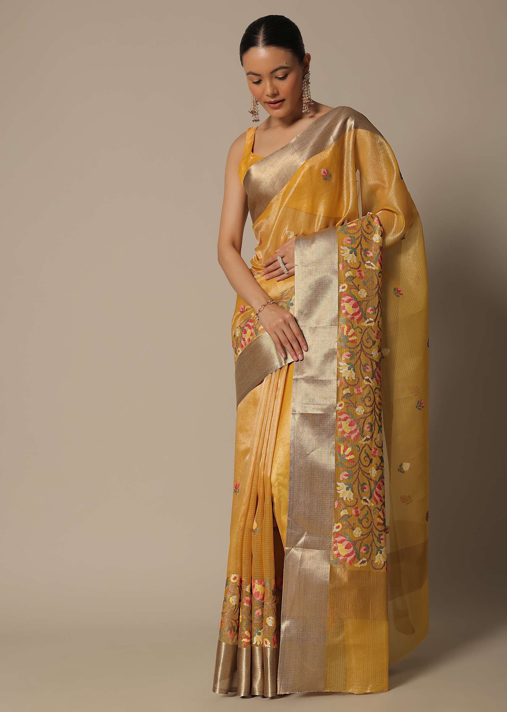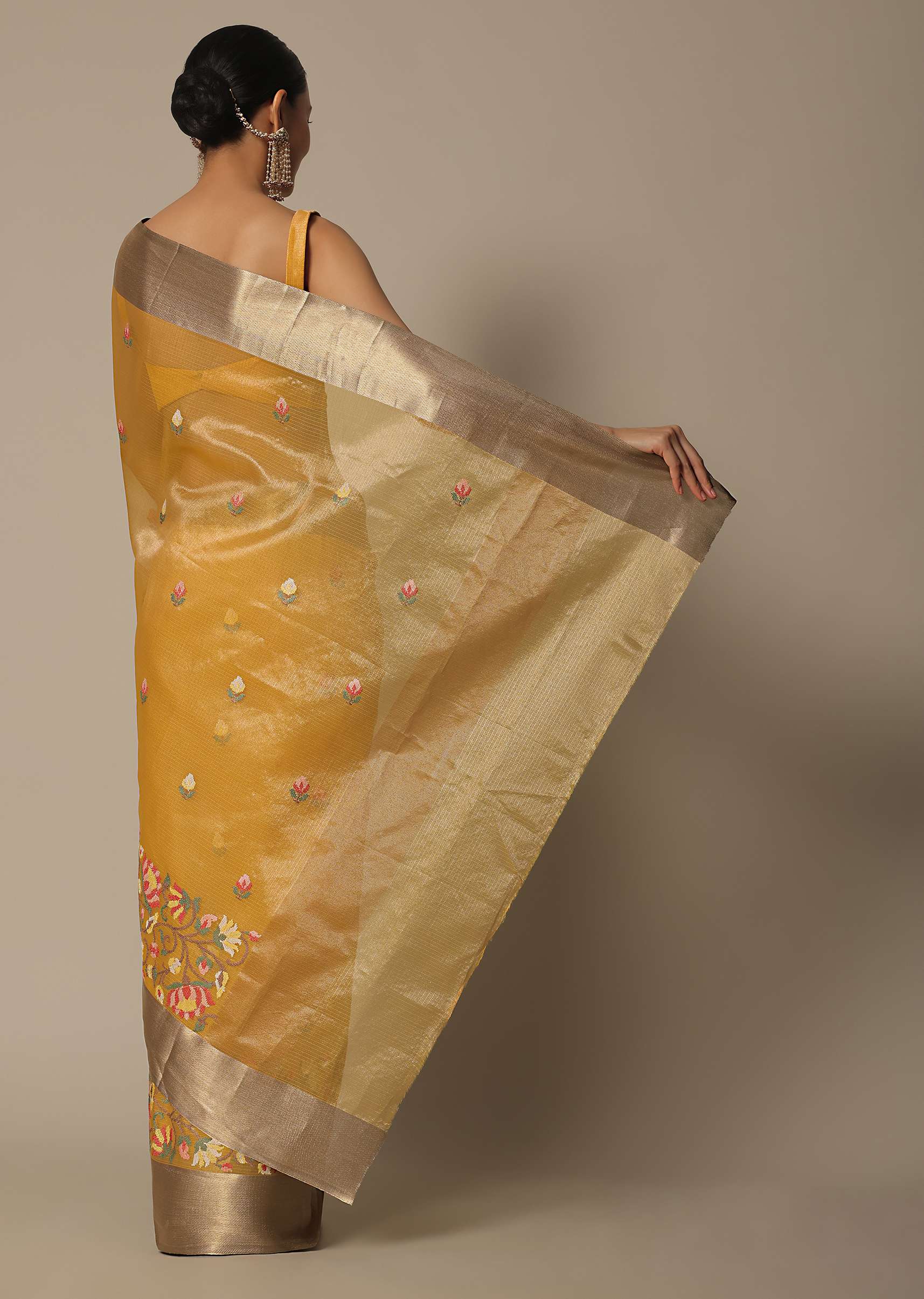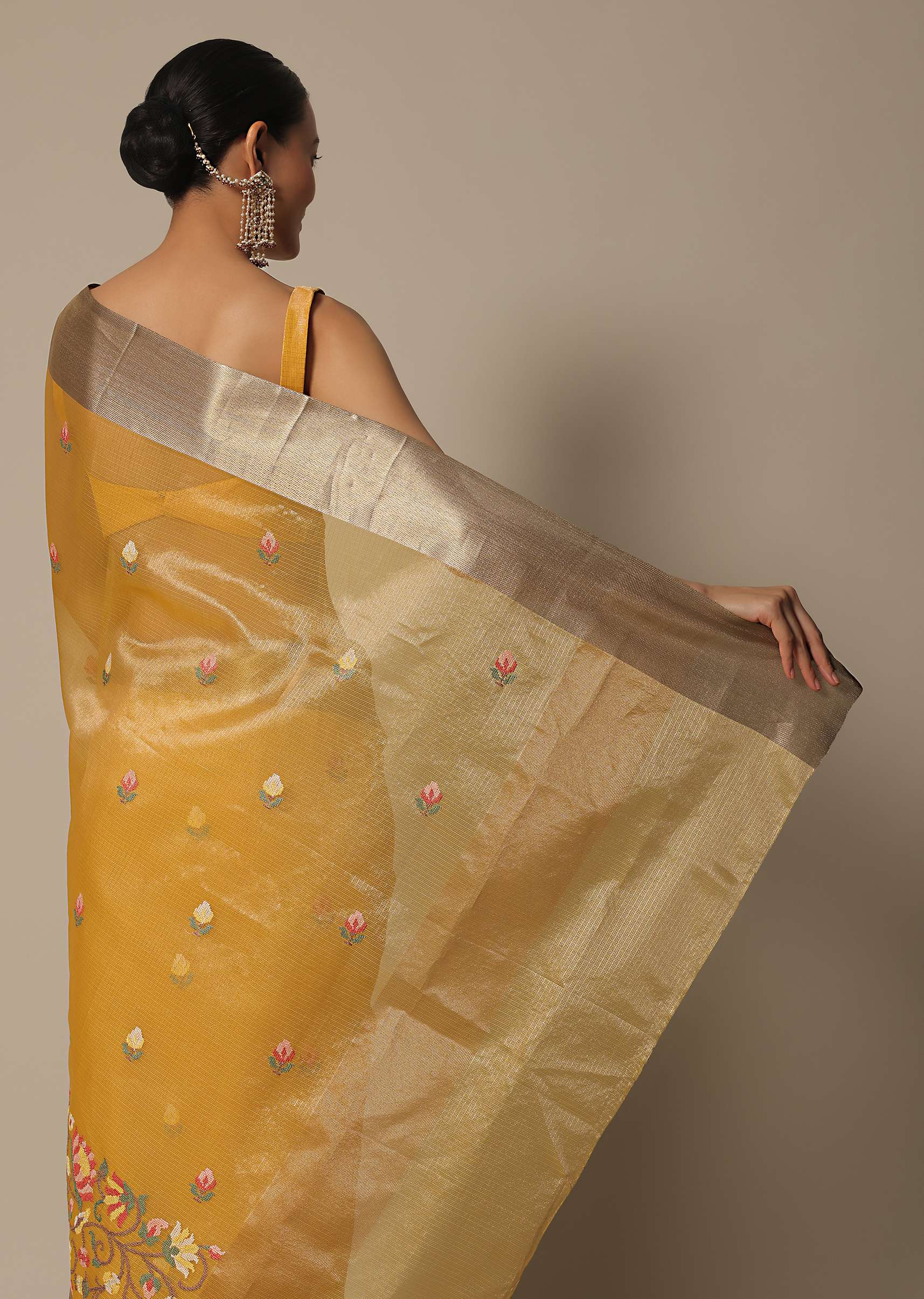 Mustard Kora Silk Saree With Multi-Color Thread Work