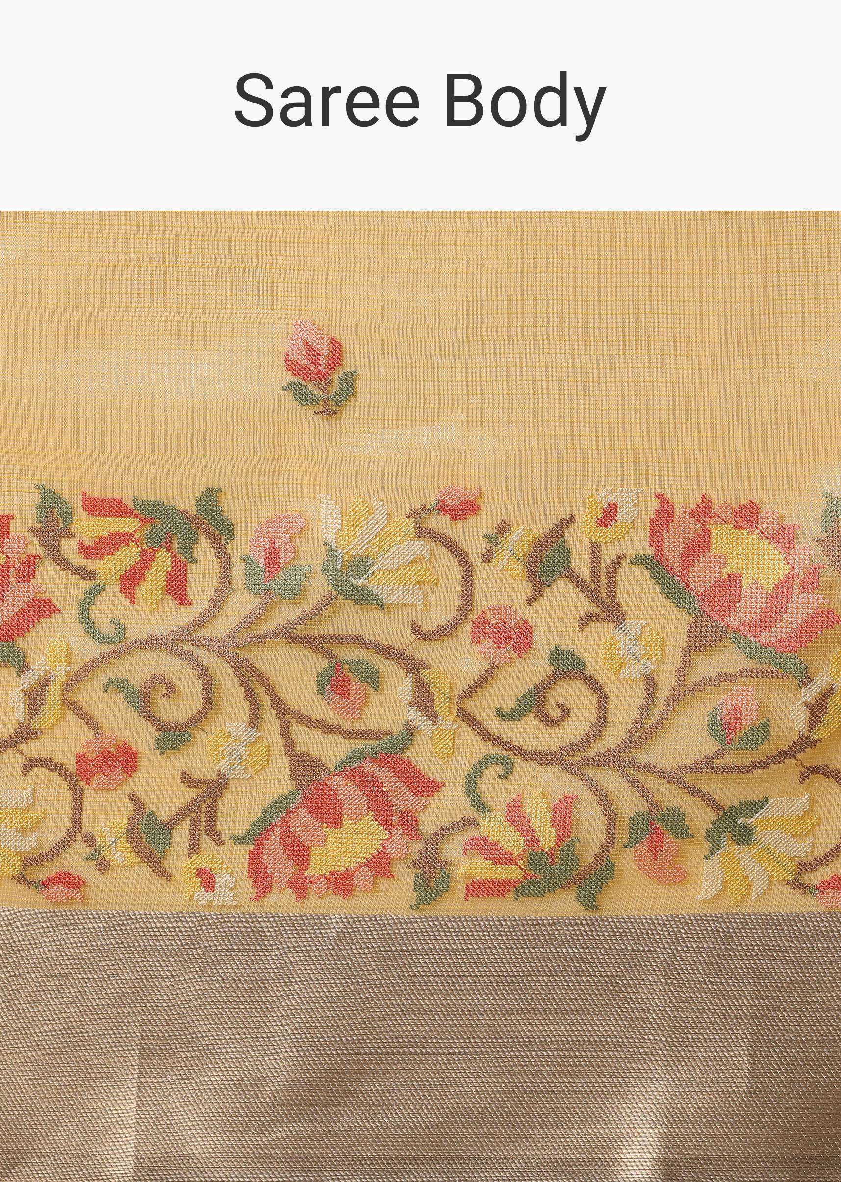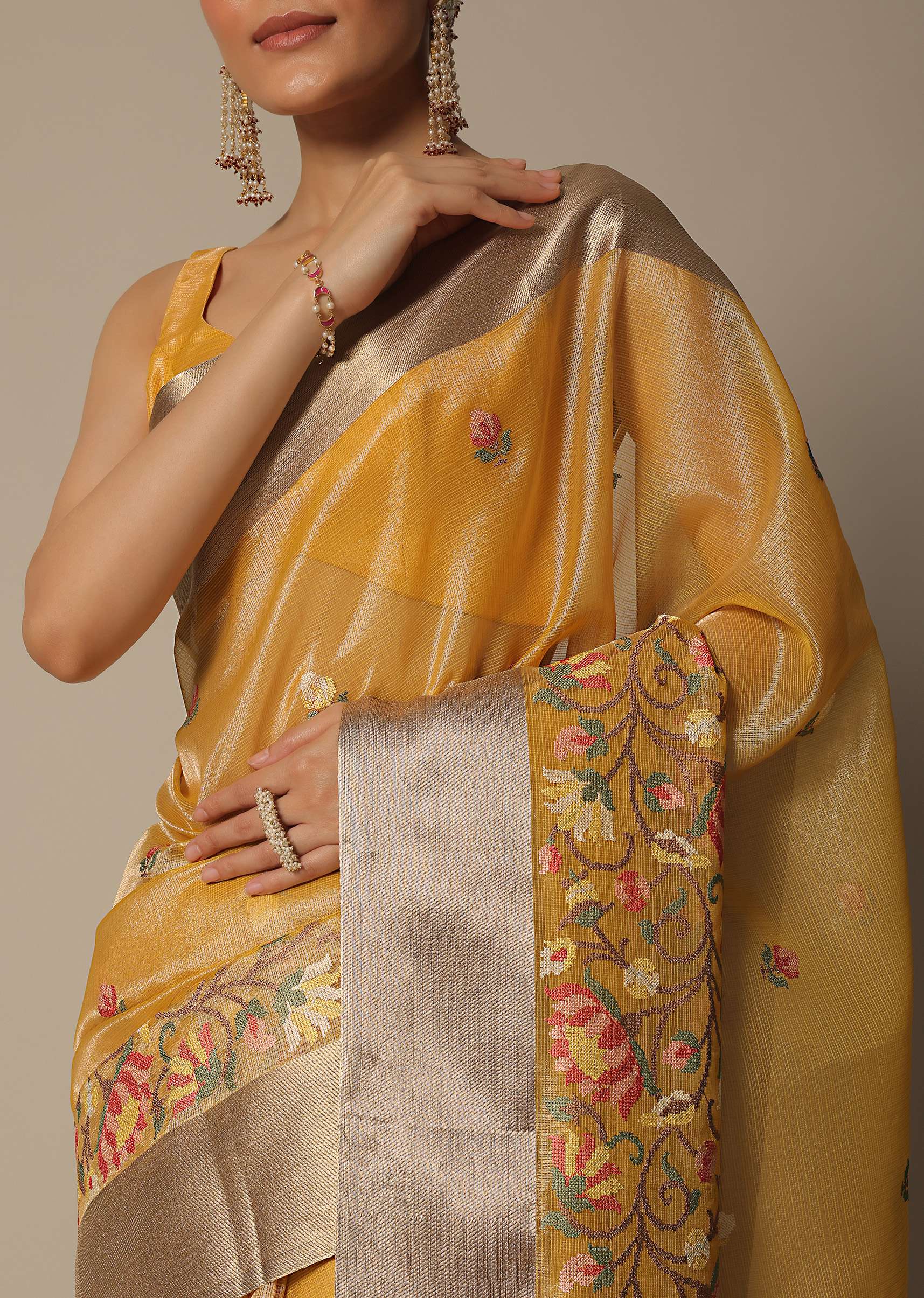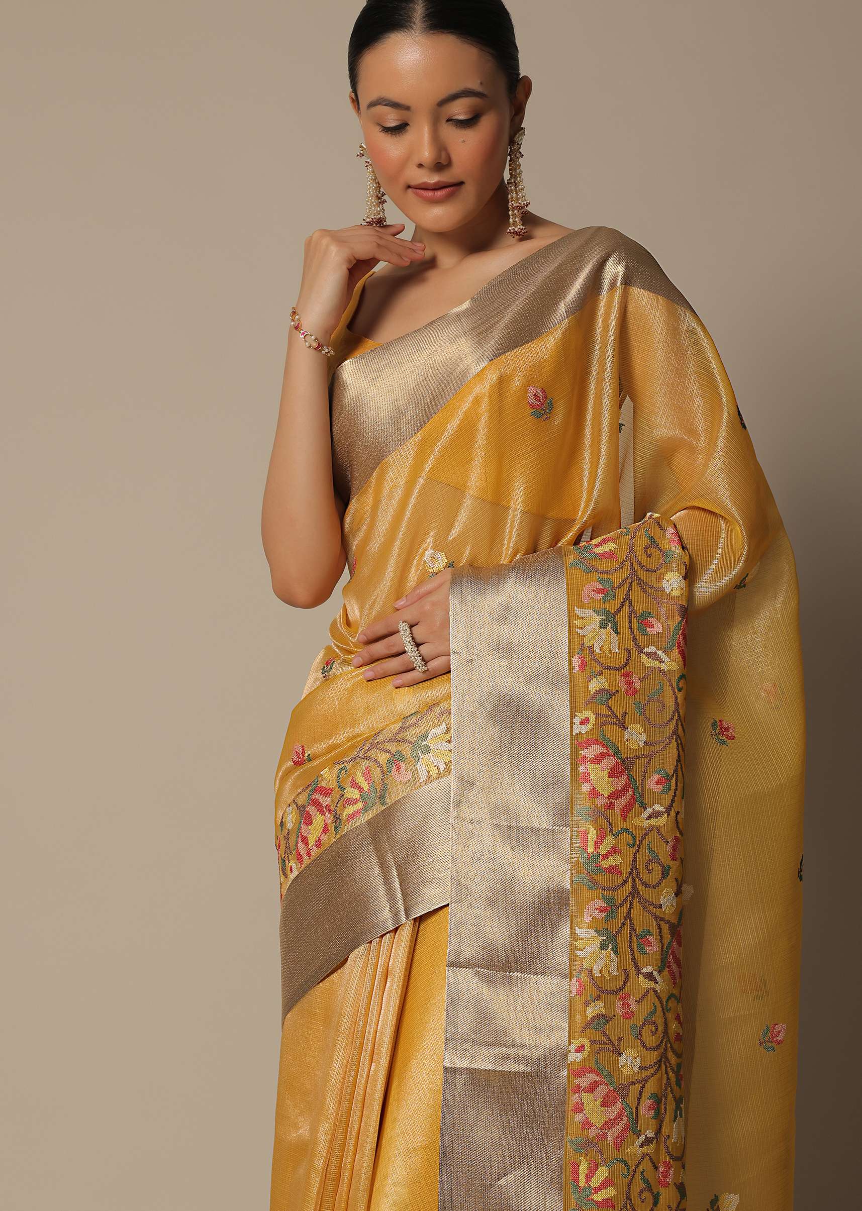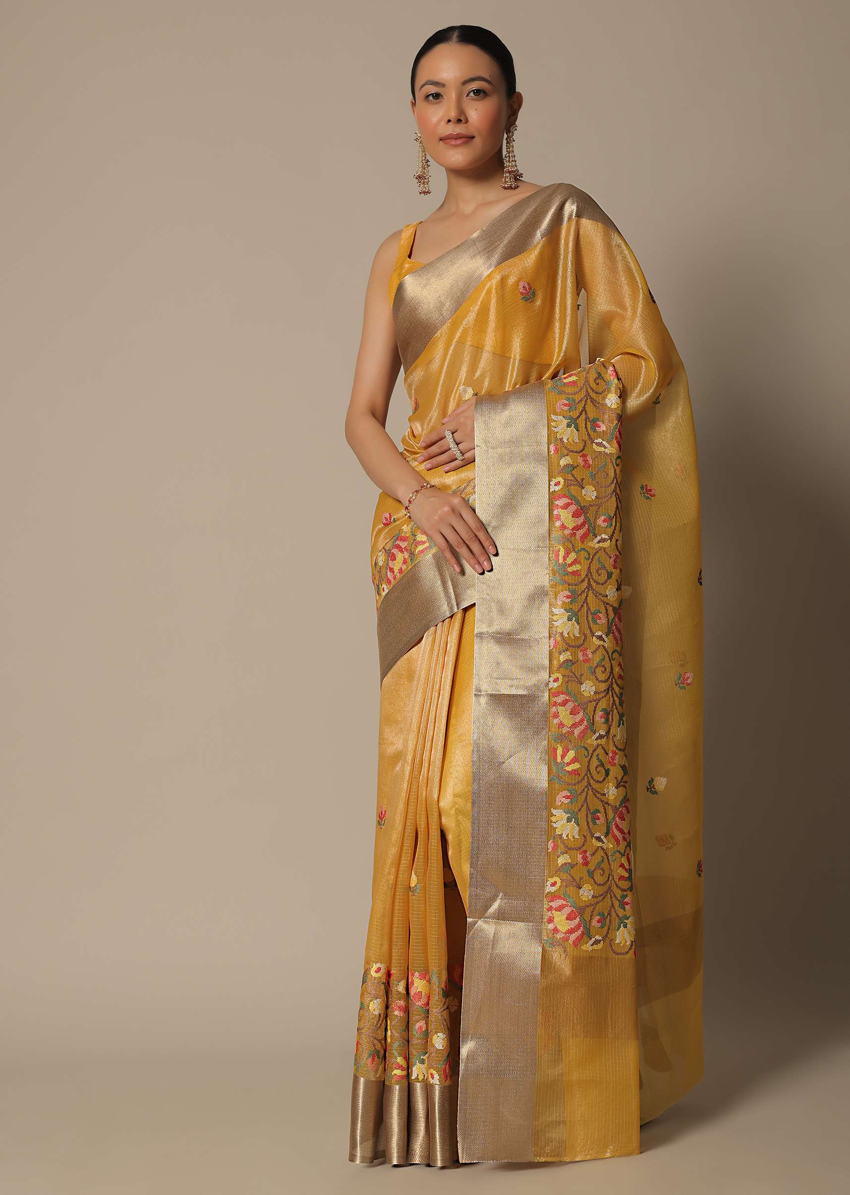 Mustard Kora Silk Saree With Multi-Color Thread Work