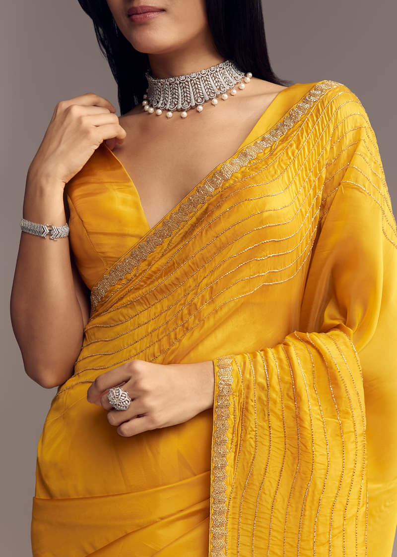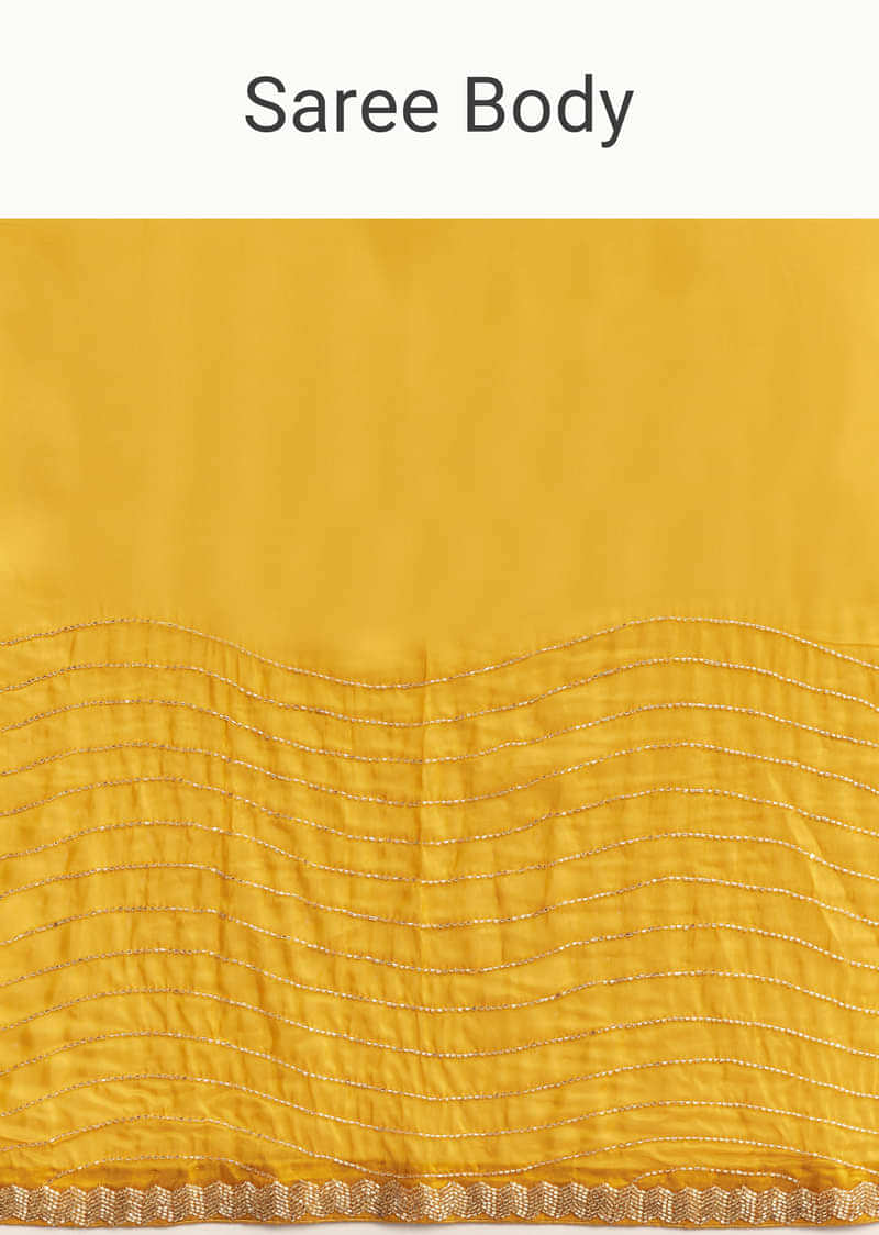 Mustard Yellow Organza Saree With Scallop Border And Stone Work