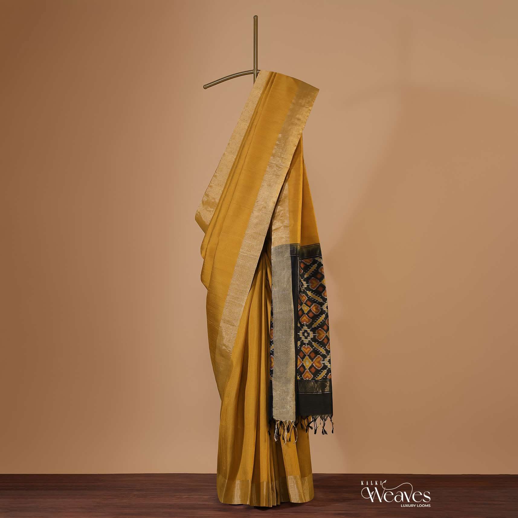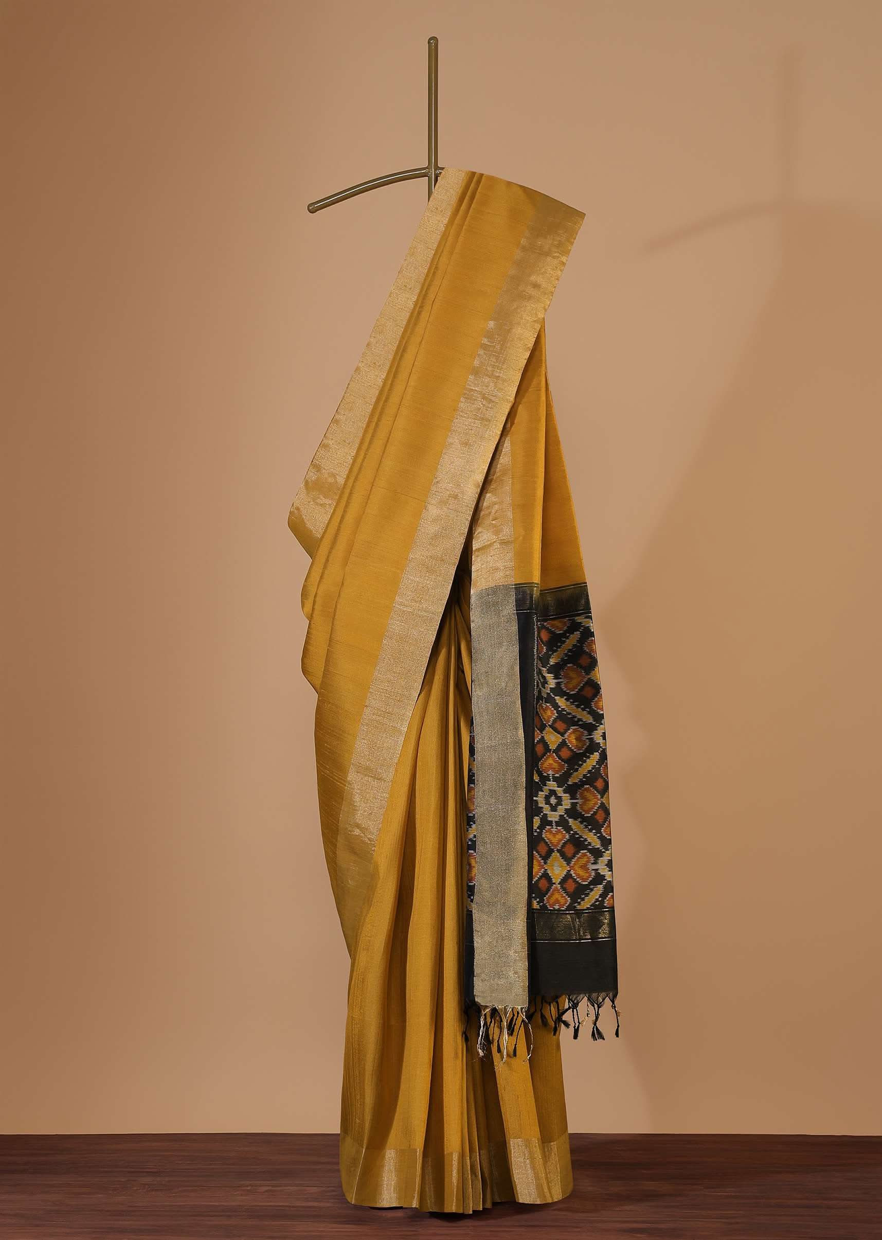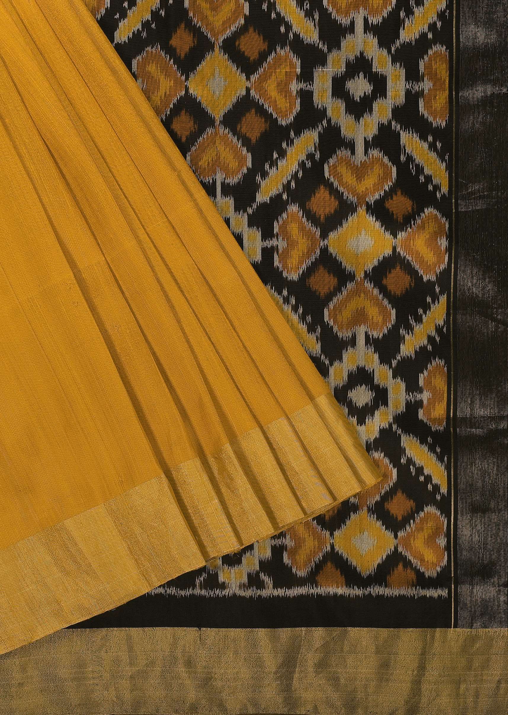 Mustard Yellow Saree In Album South Silk With Patola Pallu And Unstitched Blouse