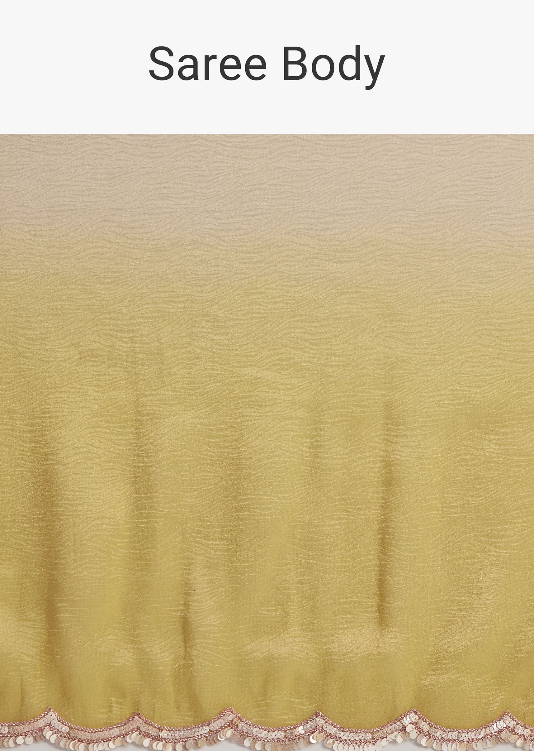 Mustard Yellow Triple Shaded Crushed Tissue Saree With Scallop Border