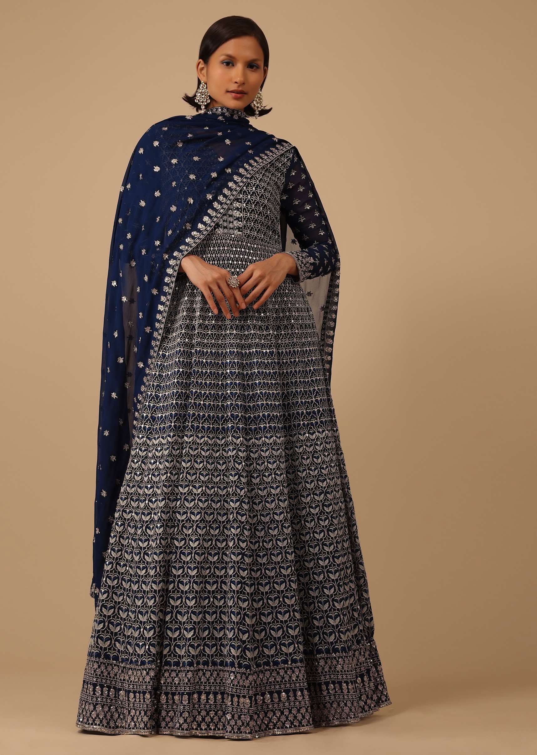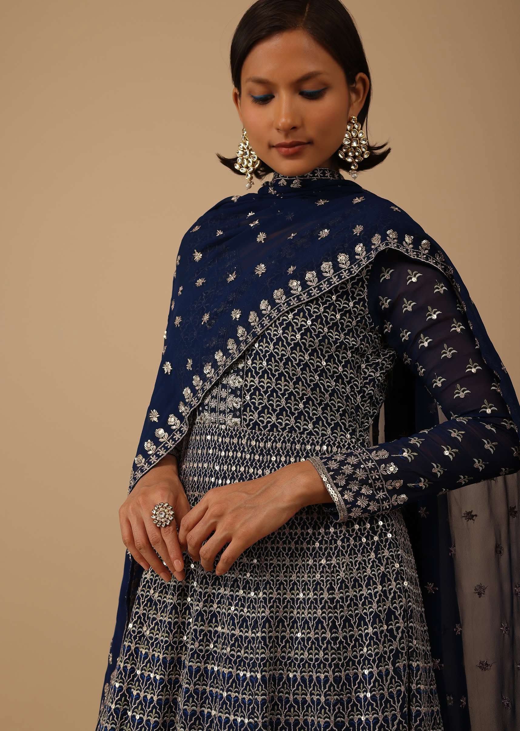 • Introducing our navy blue anarkali suit set, a stunning piece that is perfect for any formal occasion.