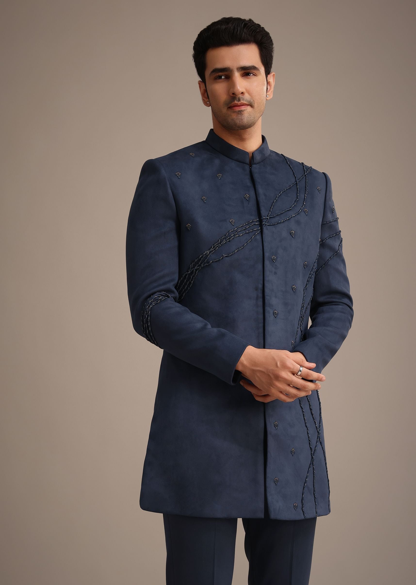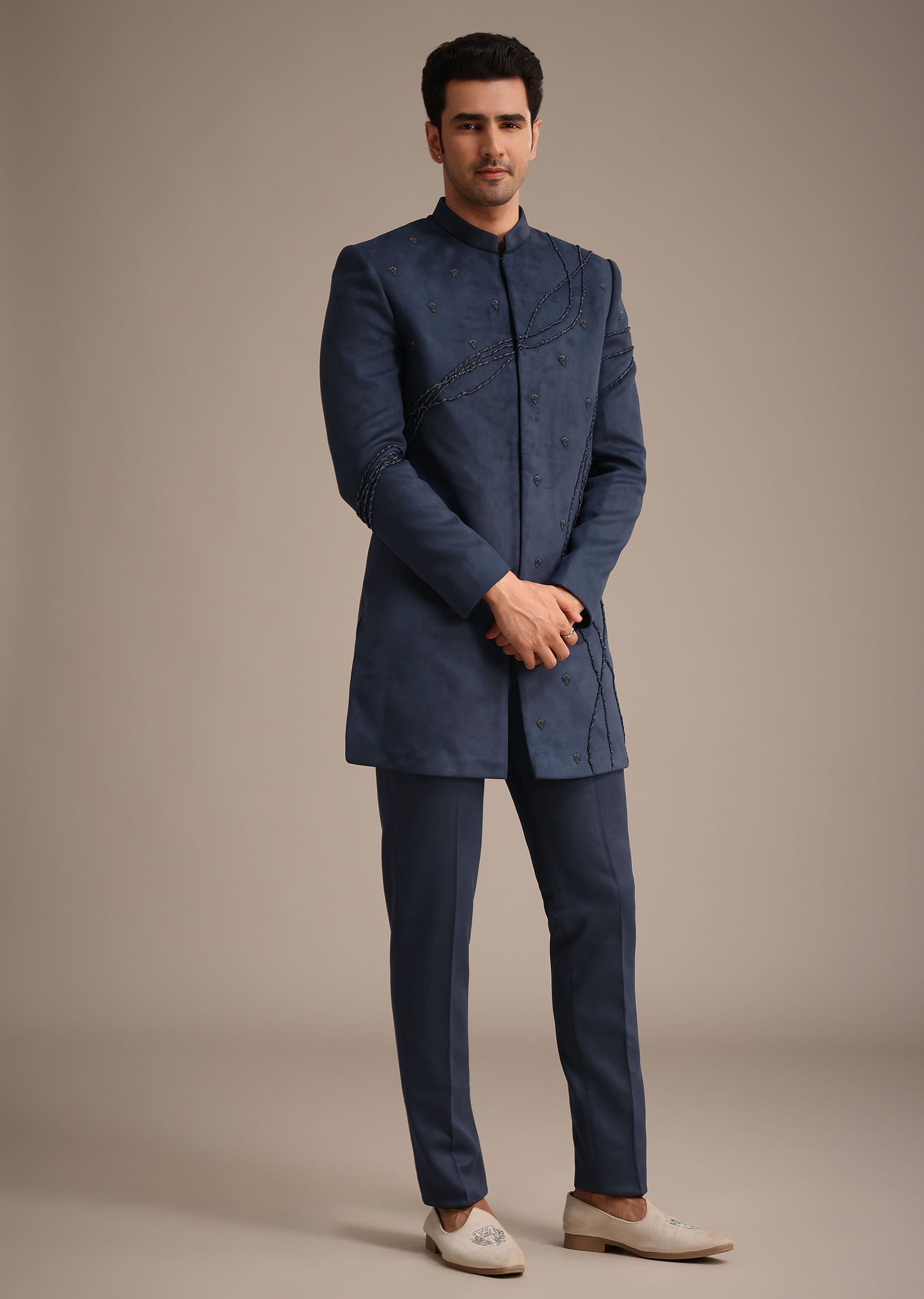- Introducing our navy blue indowestern set that will charm the crowd at every occasion.
