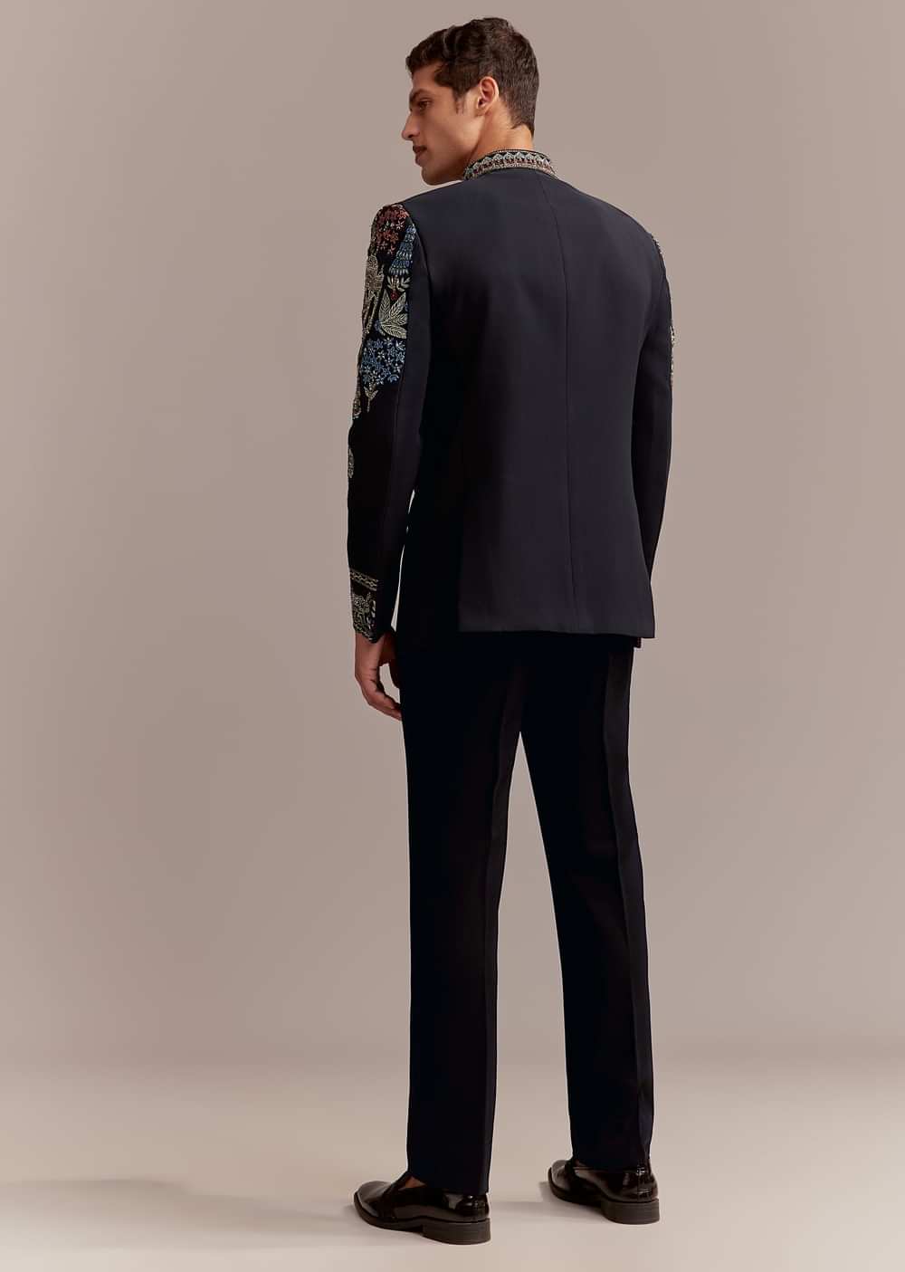 Navy Blue Jodhpuri Bandhgala Suit For Men With Thread Embroidery