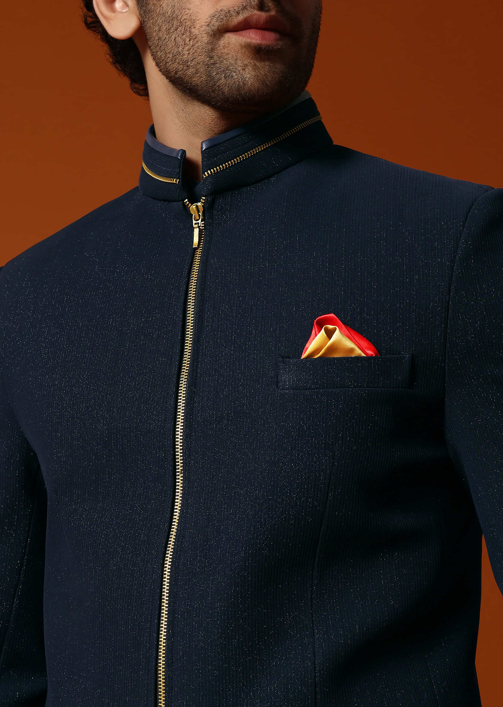 - Indulge in celebration with our meticulously designed navy blue jodhpuri set, perfect for sangeet and wedding festivities.