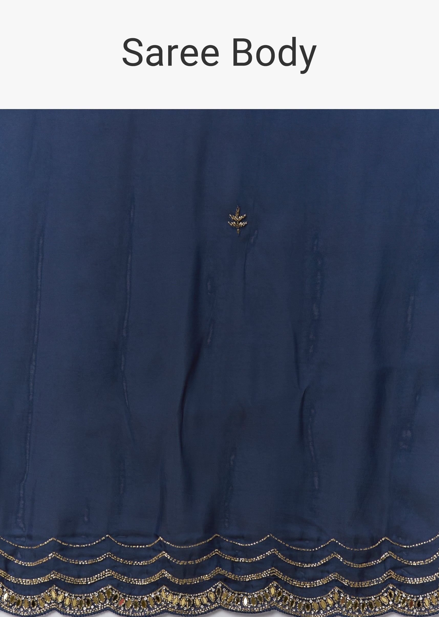 Navy Blue Kora Silk Saree With Cutdana Stones And Mirror Embroidery