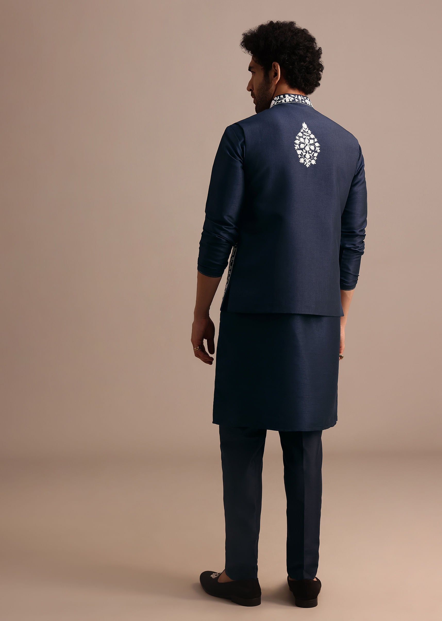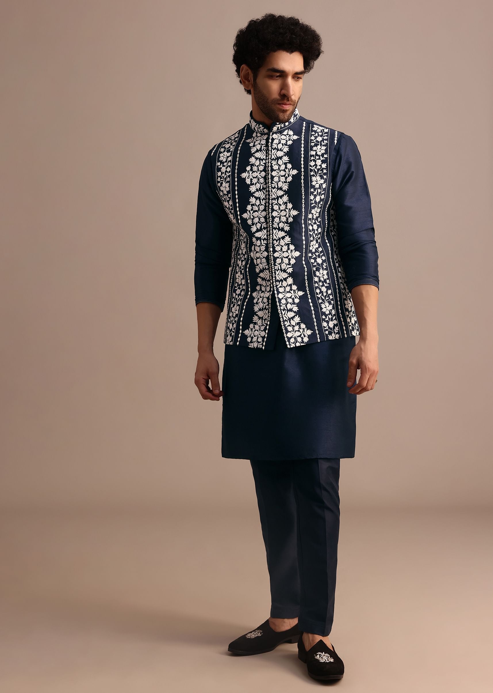- Redefine your style with this Navy Blue Silk Kurta Jacket Set.