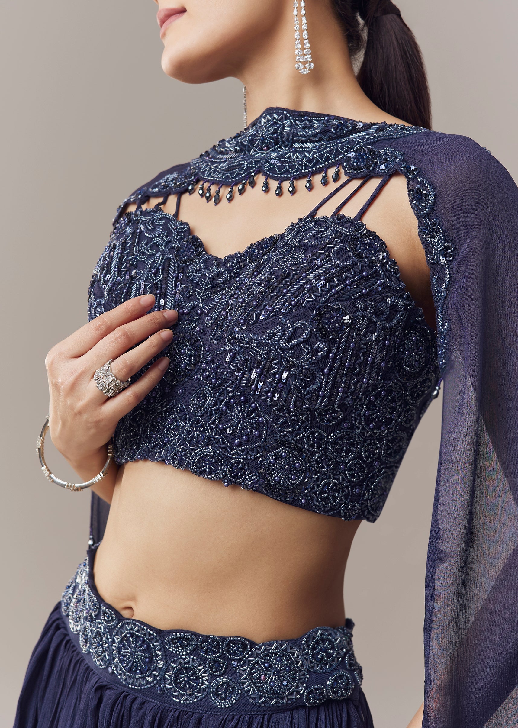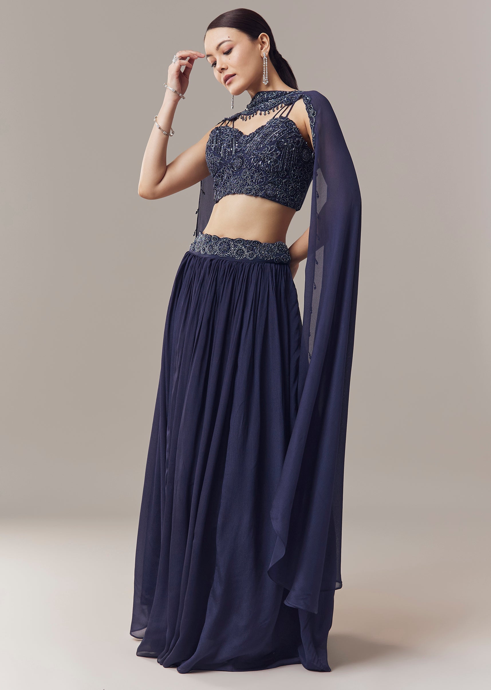 Navy Blue Lehenga With Beads Sequins And Cut Dana Work