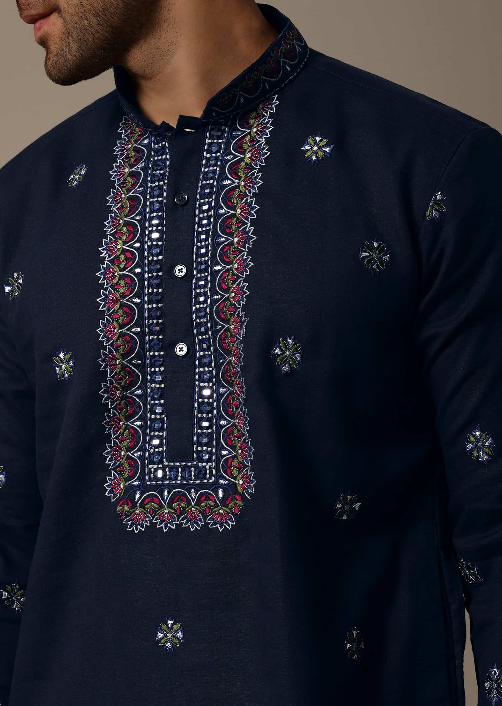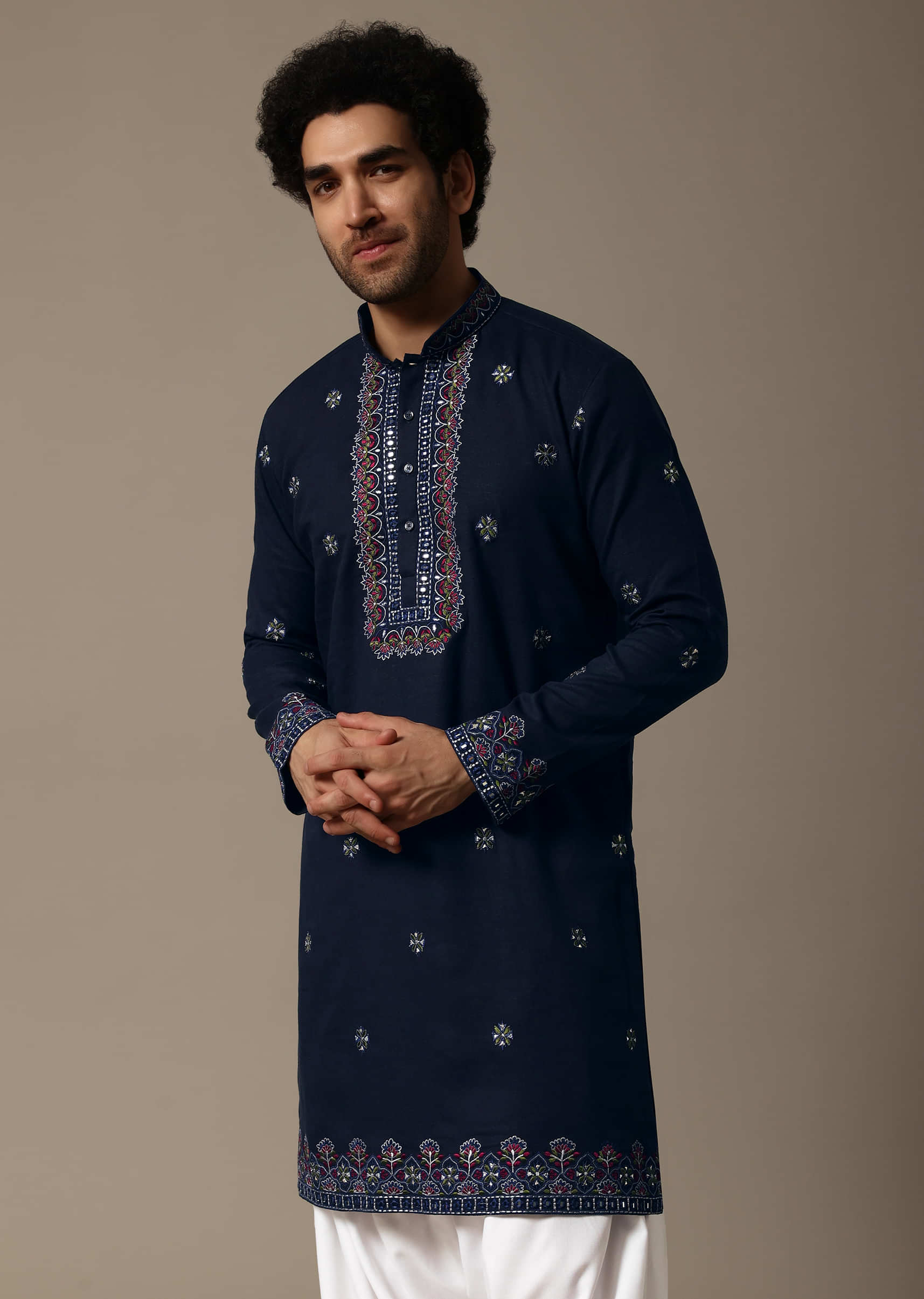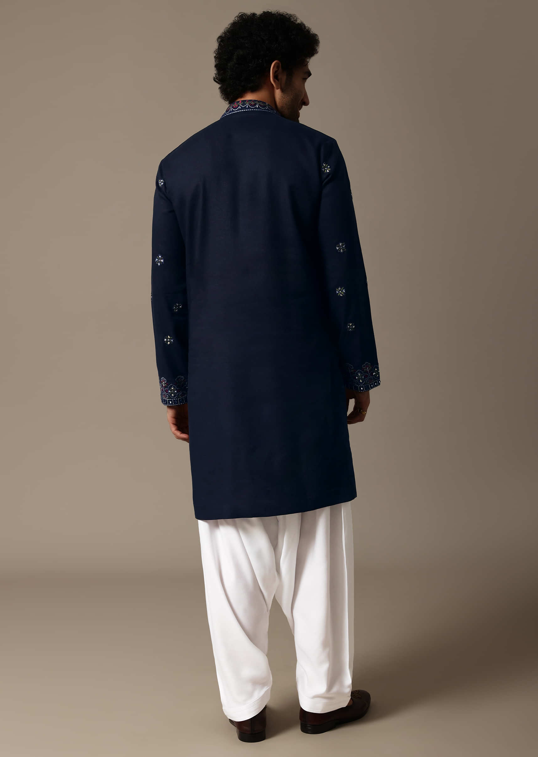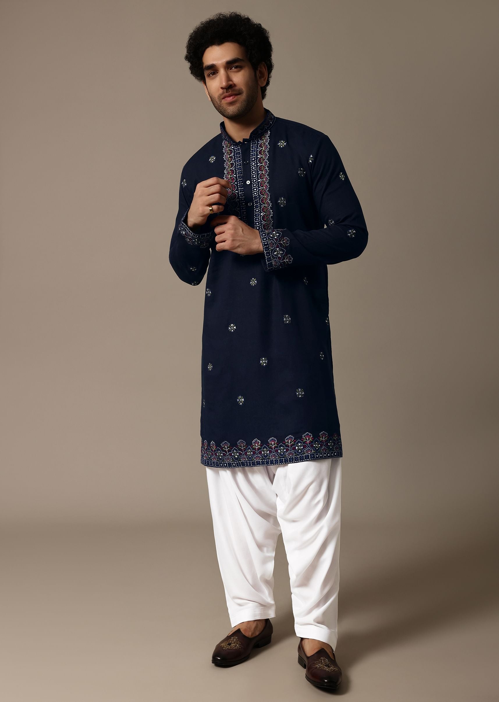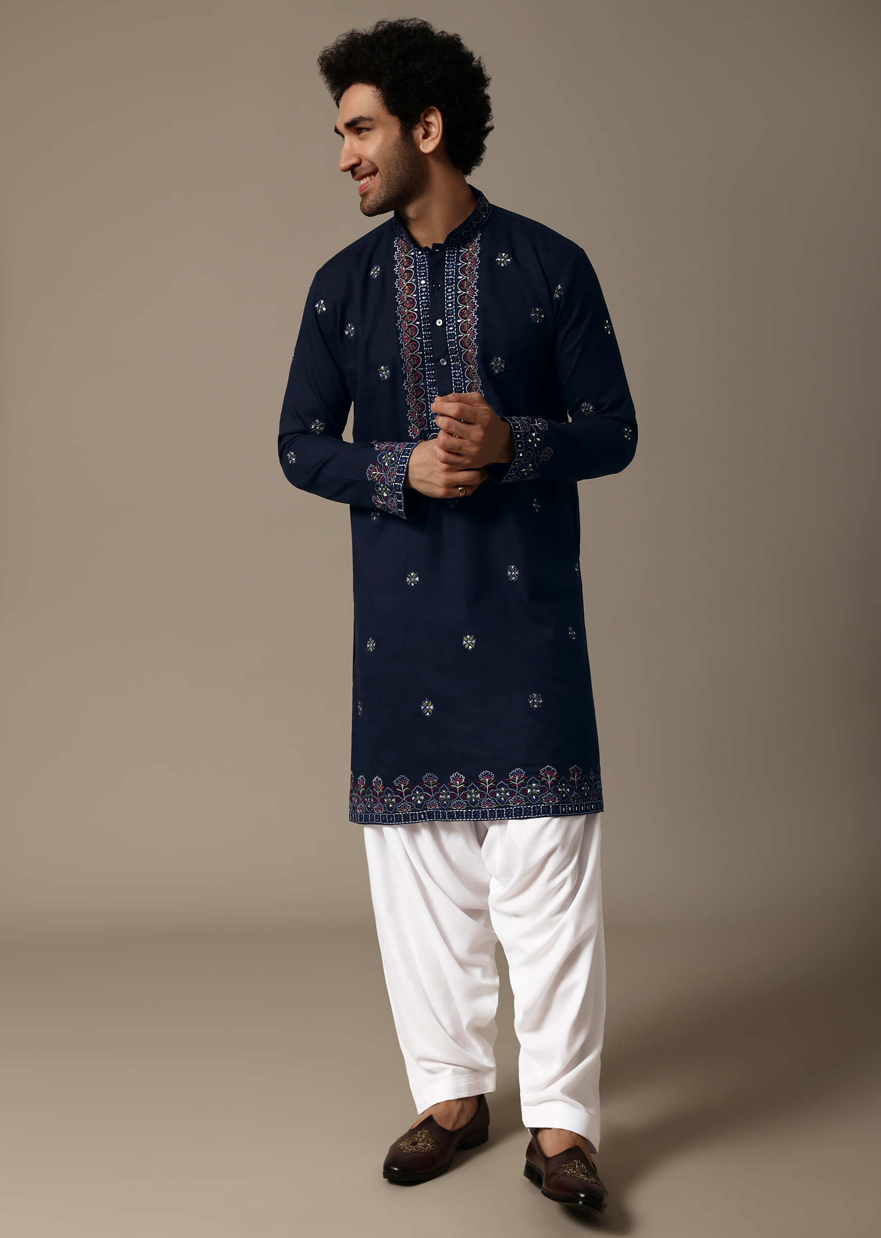 - Upgrade your festive style with our captivating navy blue kurta salwar thoughtfully designed to impart unparalleled grace to your appearance.
