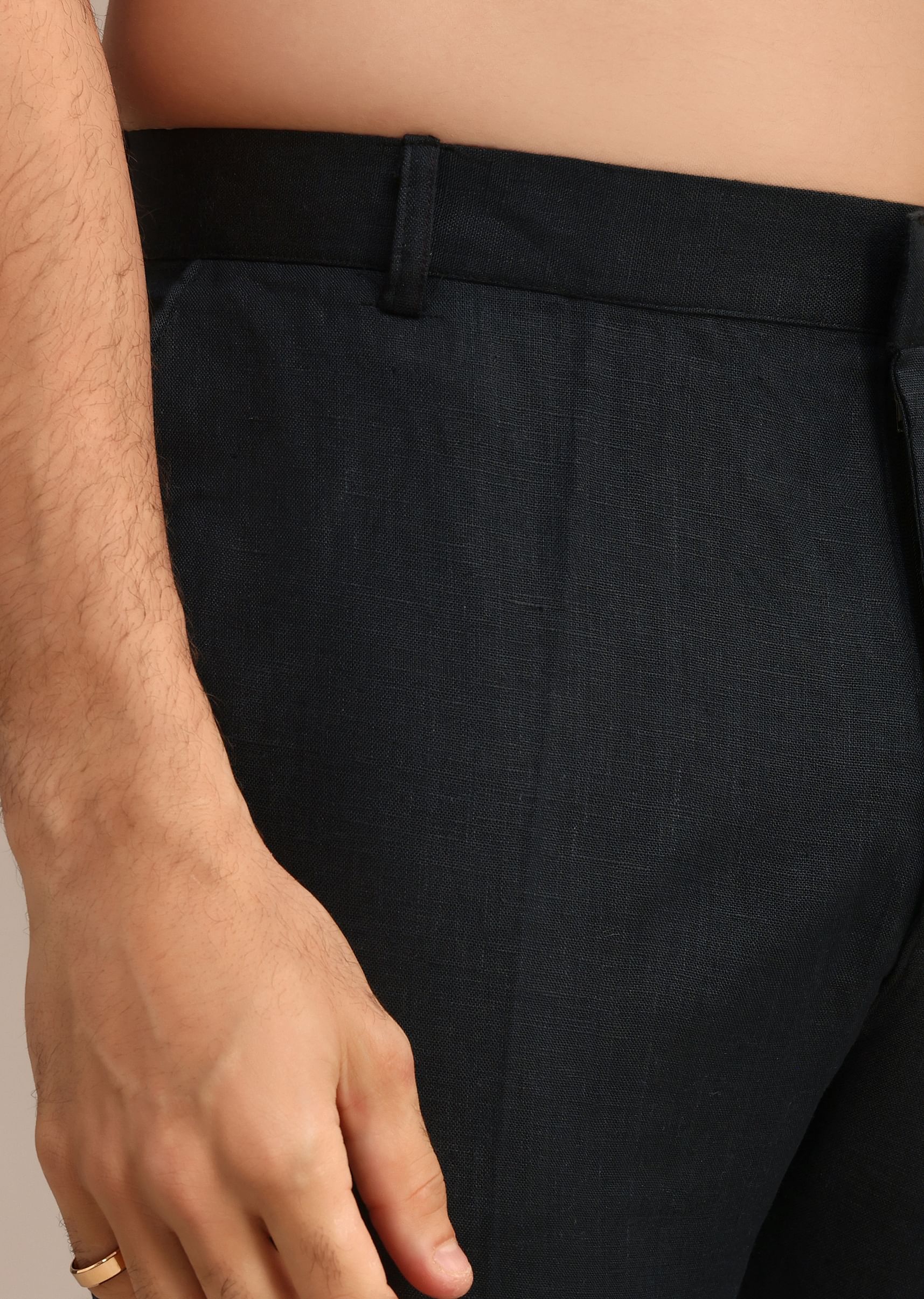 Navy Blue Linen Zardosi Embroidered Jacket Kurta Set