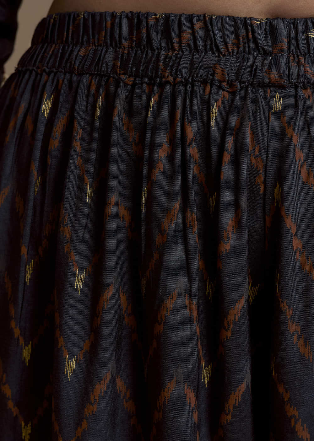 Navy Blue Printed Cotton Kurta and Palazzo Set