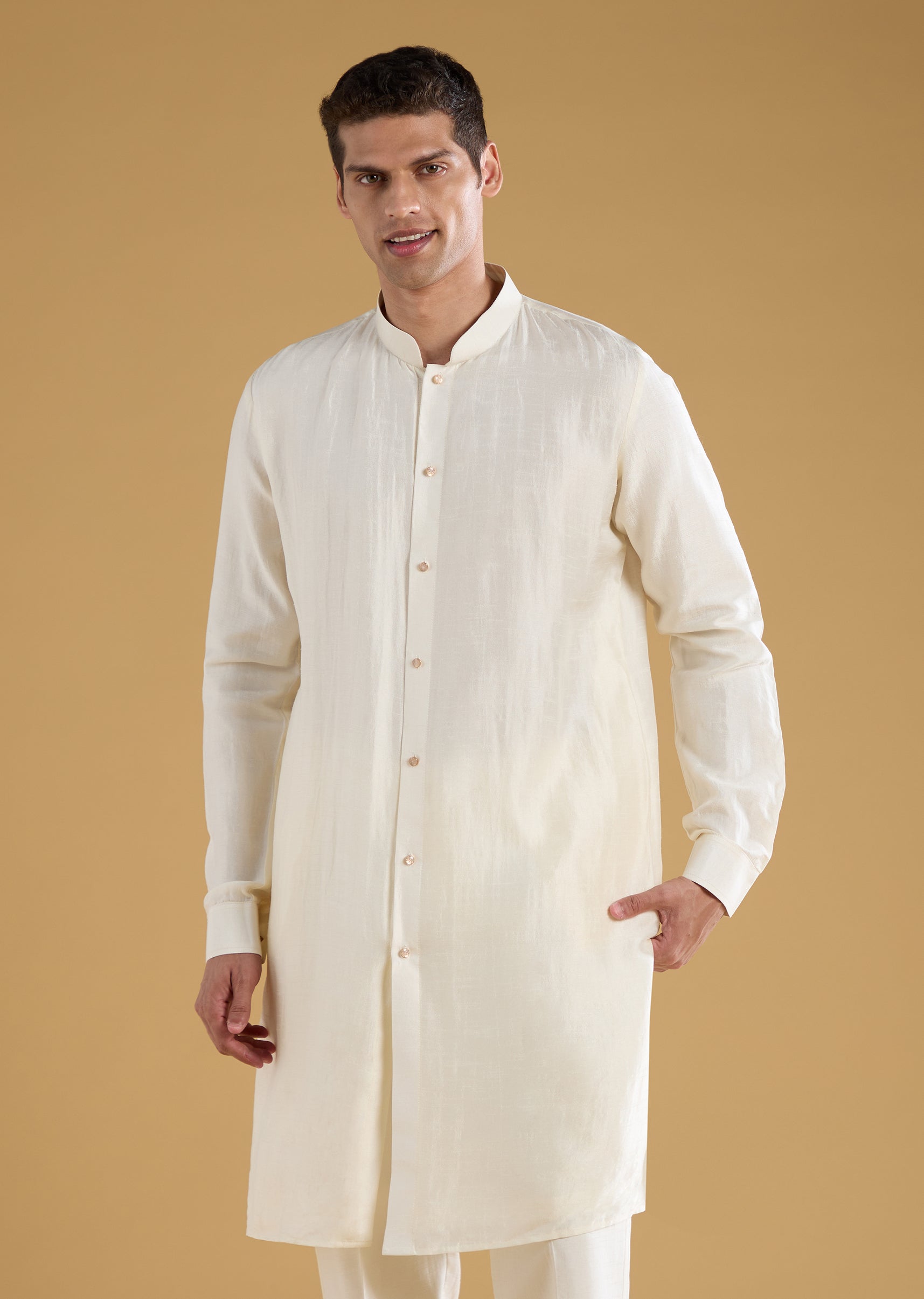 Classic elegance comes alive in this silk jacket set featuring subtle thread and resham embroidery that adds refined texture without overpowering the look. The mandarin-collared jacket paired with a sleek kurta and tailored pants creates a polished ensemble suited for everything from wedding rituals to refined evening celebrations. Its minimal yet sophisticated detailing makes it a timeless choice for men who appreciate understated luxury. Awarded as the Most Trusted Brand, we're delivering styles you love, just as promised.