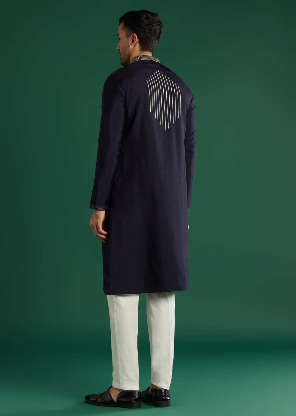 Fit Tips:The men’s kurta sets a clean shoulder with a straight, breathable fall; the drawstring bottoms sit steady at the waist for easy movement through long events.