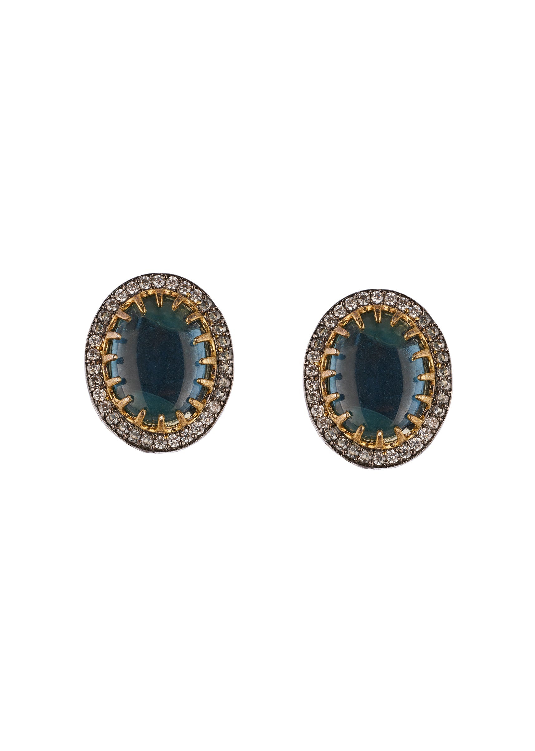 A refined pair of studs crafted in navy and black tones enhanced with elegant diamond inspired surrounding work. The deep hues and intricate detailing create a sleek and polished look... More Product Details