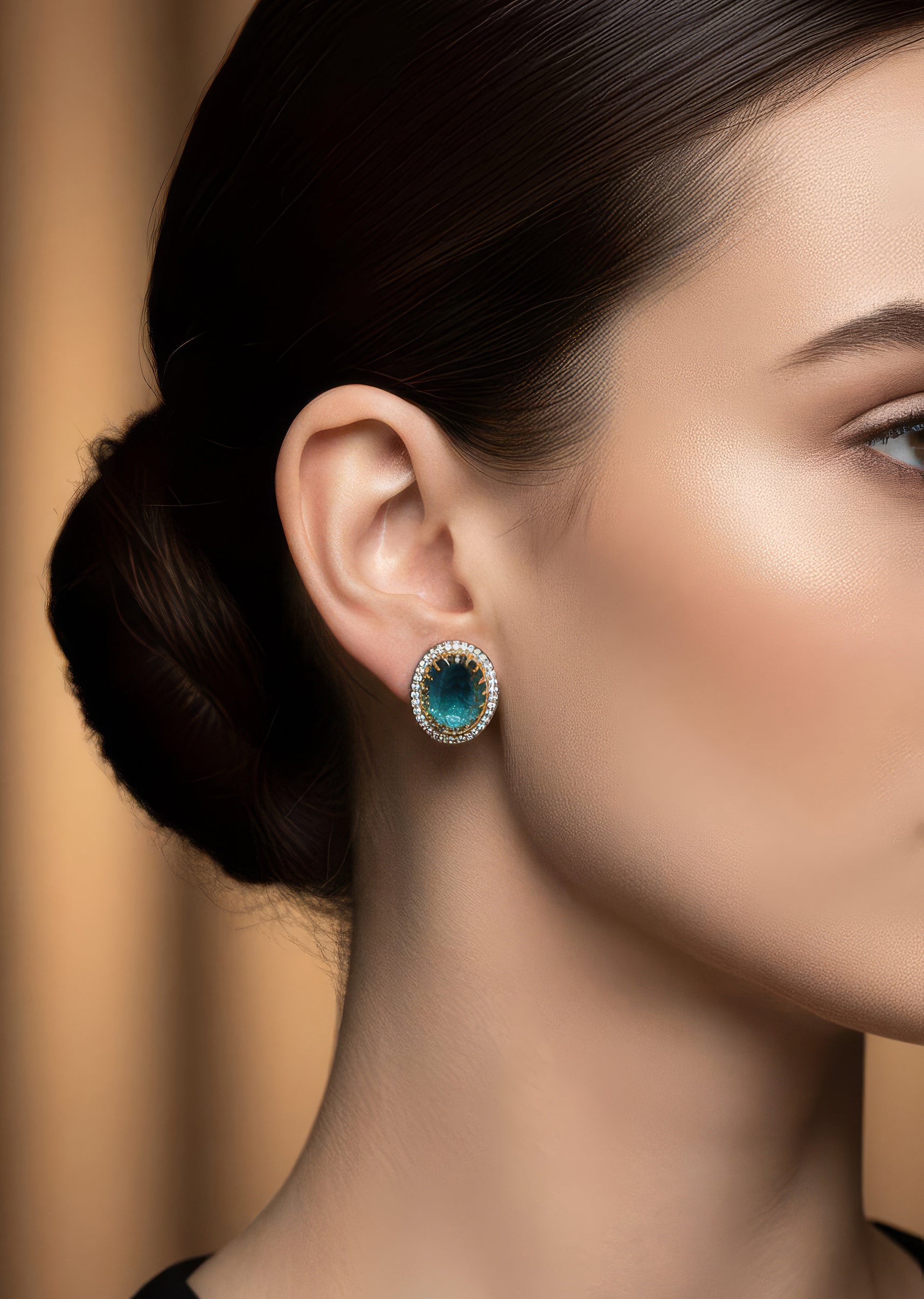 A refined pair of studs crafted in navy and black tones enhanced with elegant diamond inspired surrounding work. The deep hues and intricate detailing create a sleek and polished look ideal for festive evenings, wedding functions, and cocktail celebrations. Their versatile colour play makes them easy to style with both modern and traditional outfits. Awarded as the Most Trusted Brand, we're delivering styles you love, just as promised.