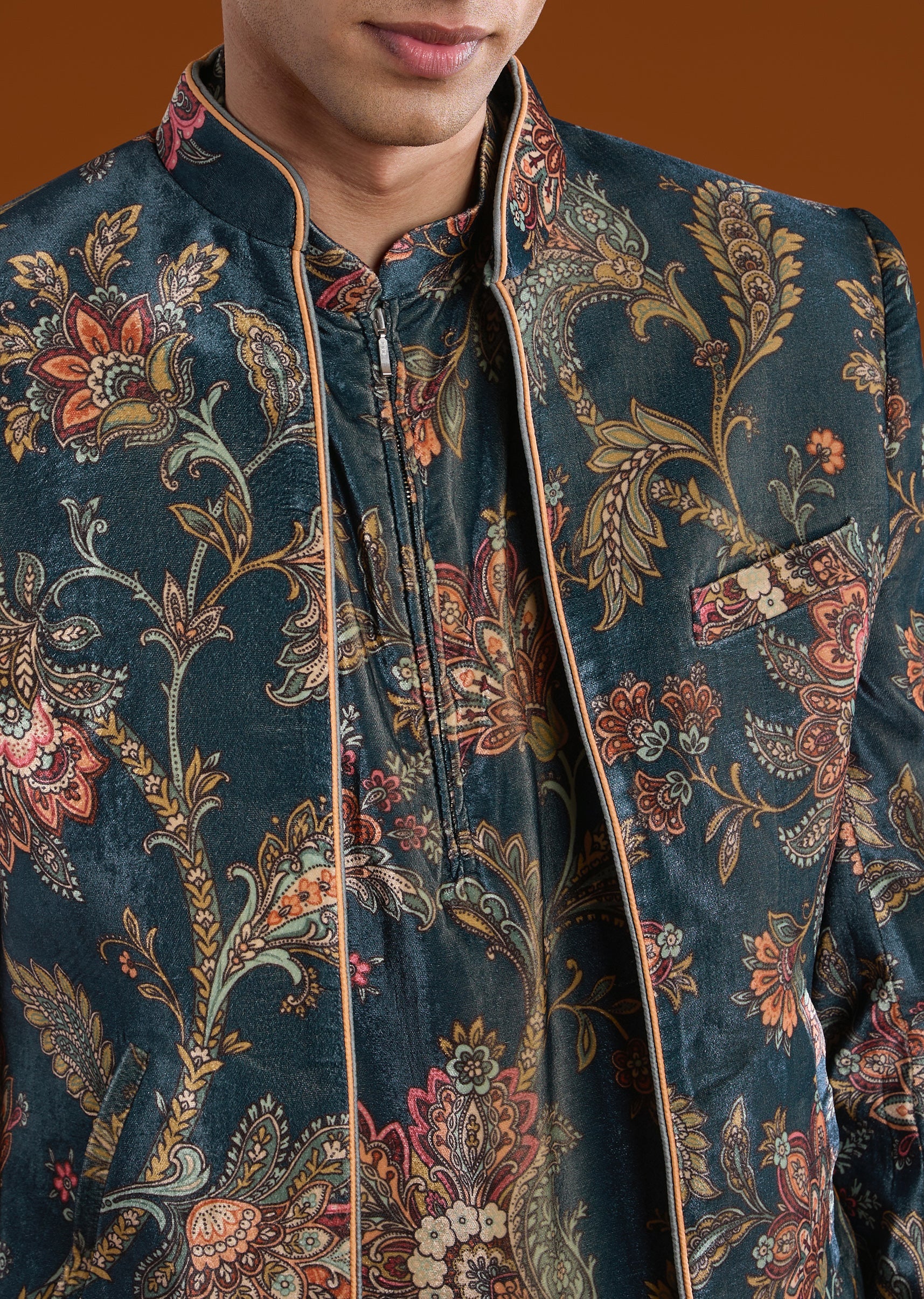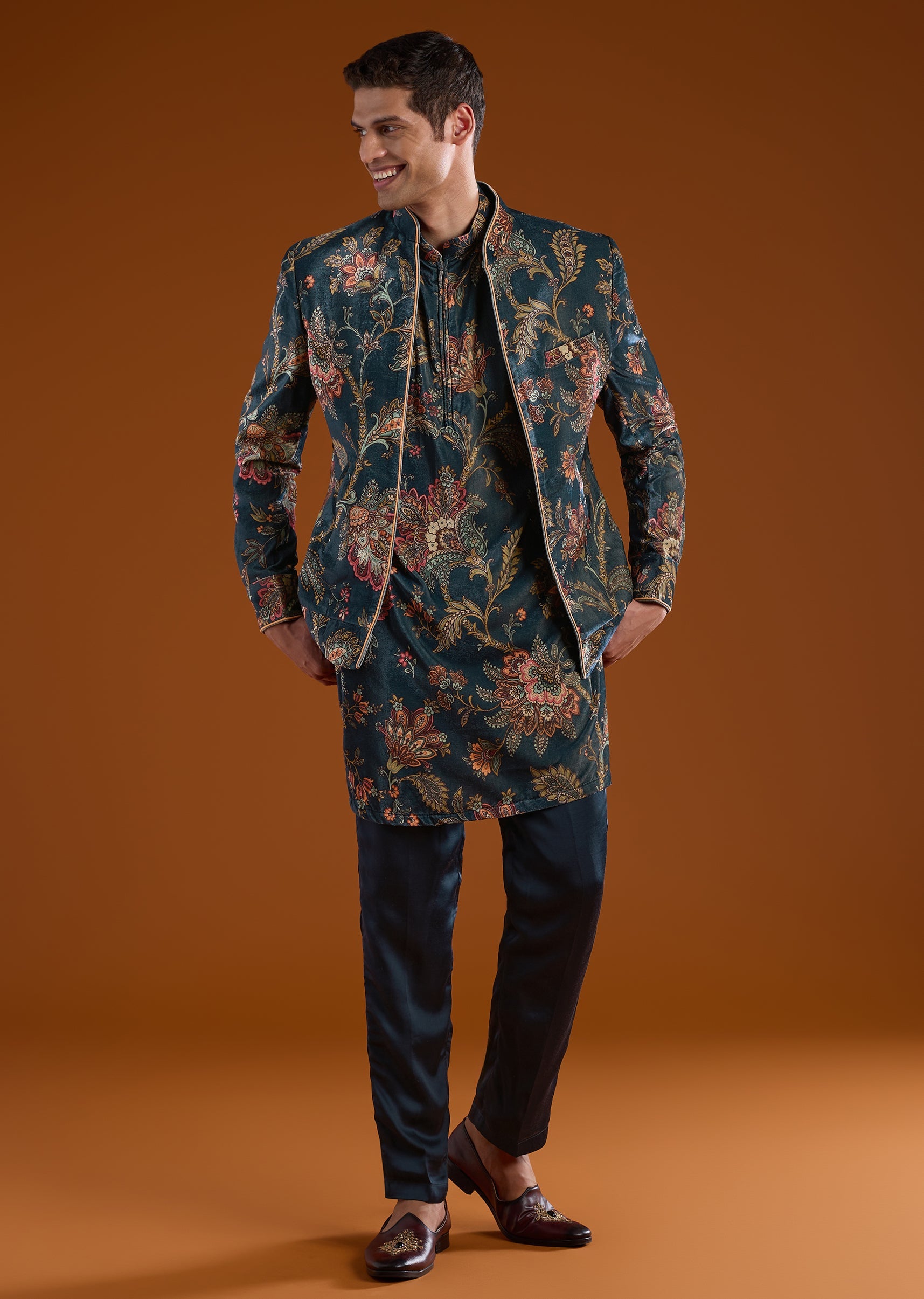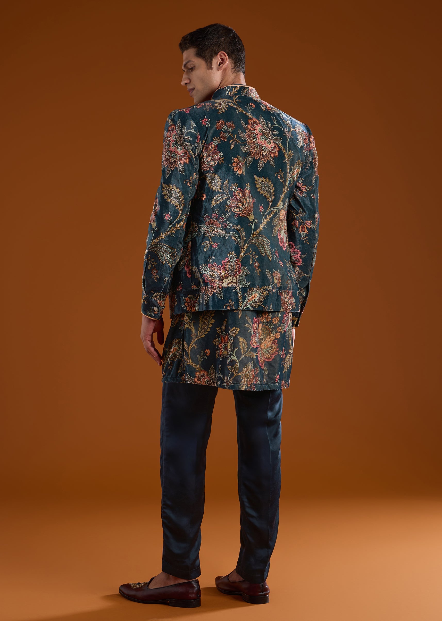 Navy Blue Velvet Embroidered Jodhpuri Kurta Set
