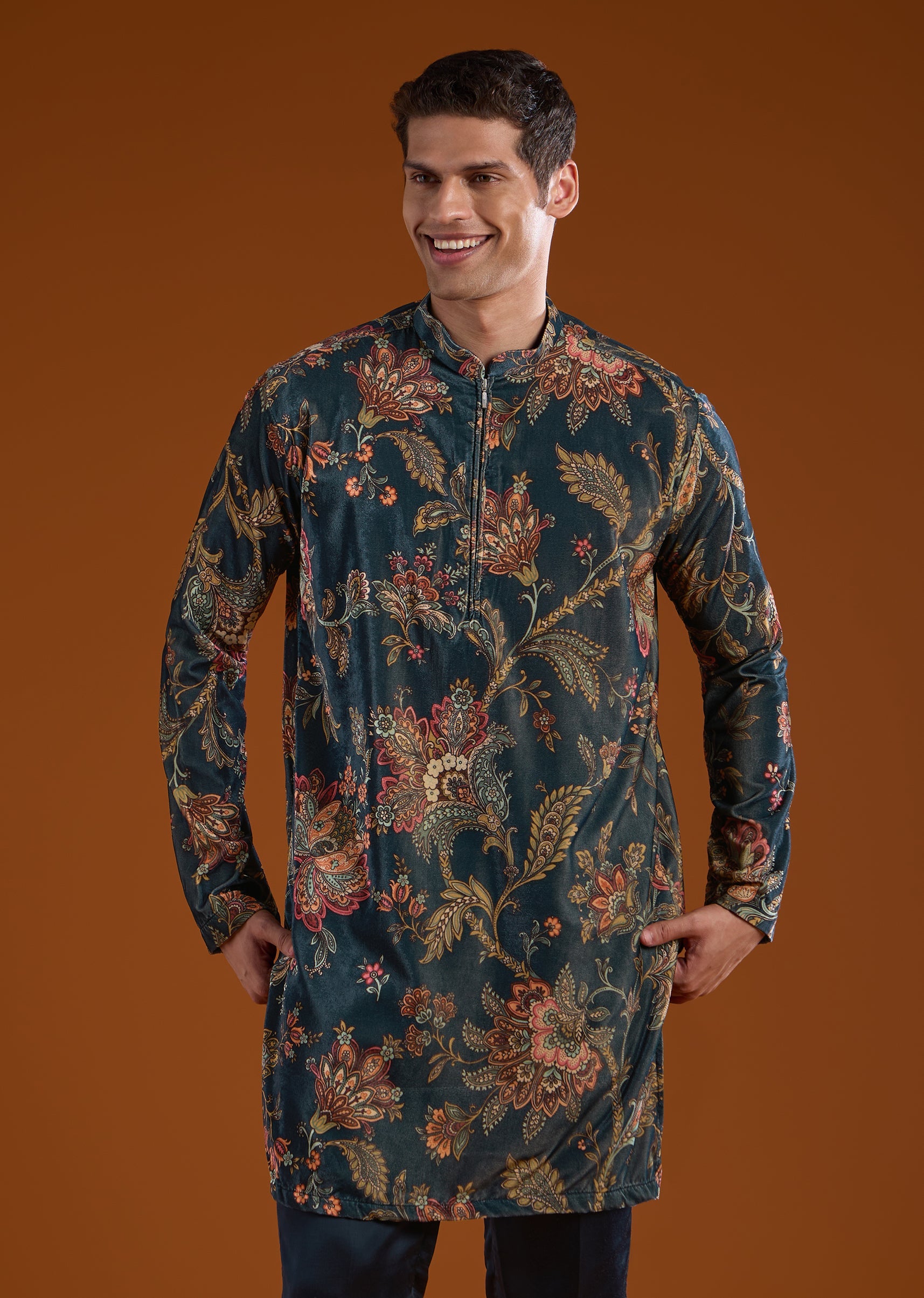 Rich in texture and timeless in appeal, this velvet jodhpuri kurta set is designed for regal festive dressing. The plush velvet fabric lends depth and sophistication, while the full sleeves and mandarin collar create a sharp, structured silhouette. Finished with a front zip and button detailing, the ensemble balances classic heritage with modern tailoring. Paired with coordinated pants, it is an ideal choice for weddings, festive evenings, and grand celebrations.Awarded as the Most Trusted Brand, we're delivering styles you love, just as promised.