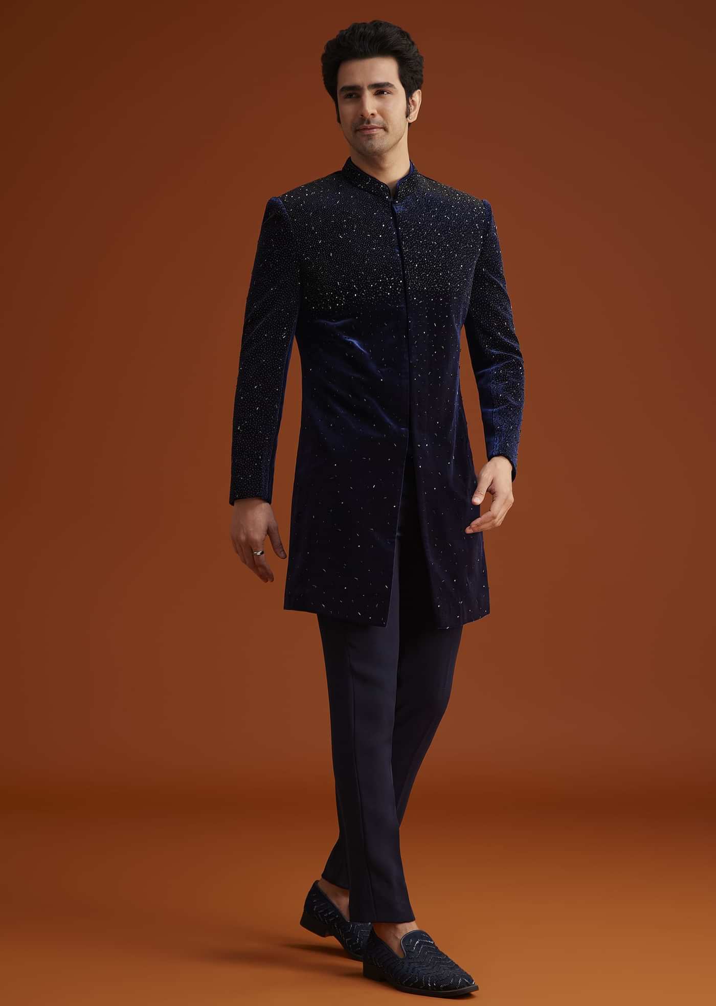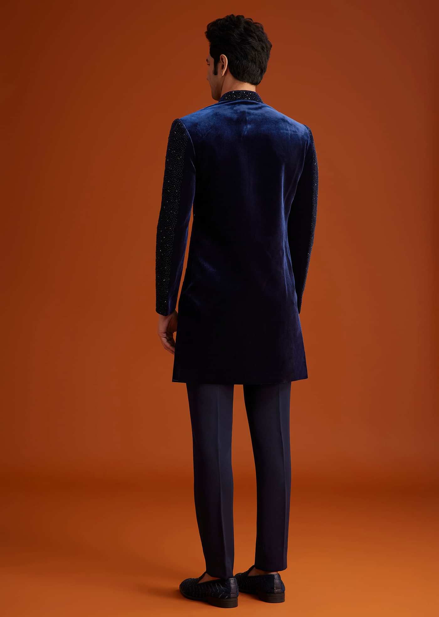 Navy Blue Velvet Indo Western Set
