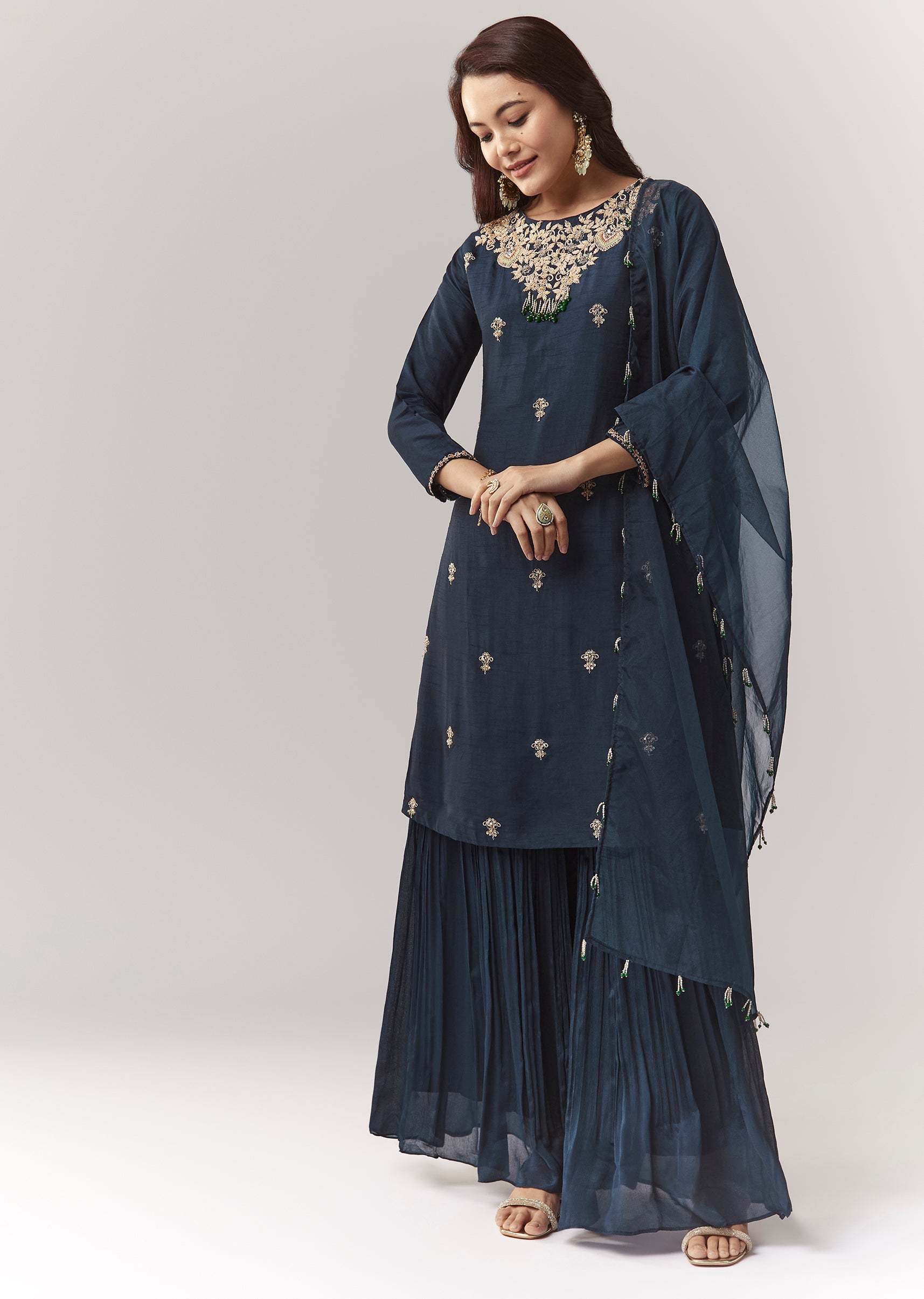 Navy Pakistani Style Sharara Set With Dupatta