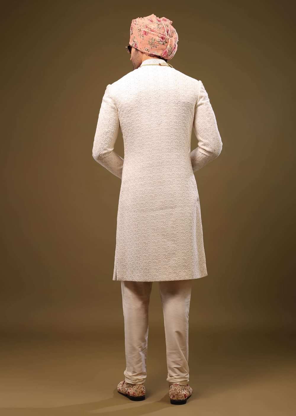 Nude White Lucknowi Sherwani Set In Zari And Cut-dana