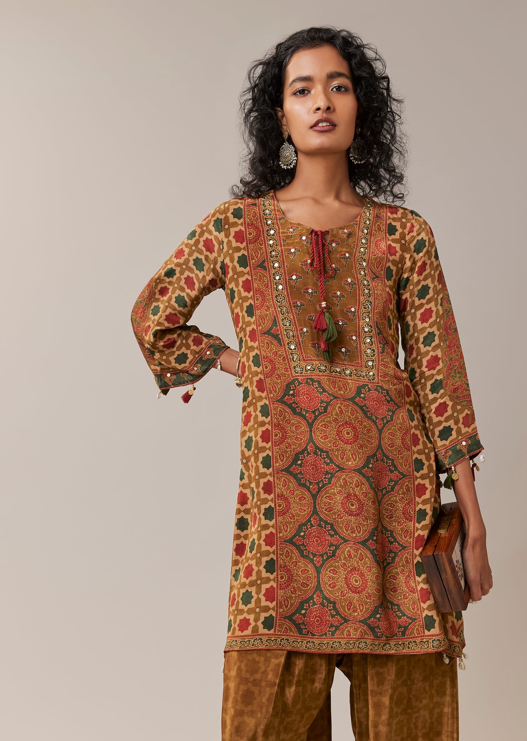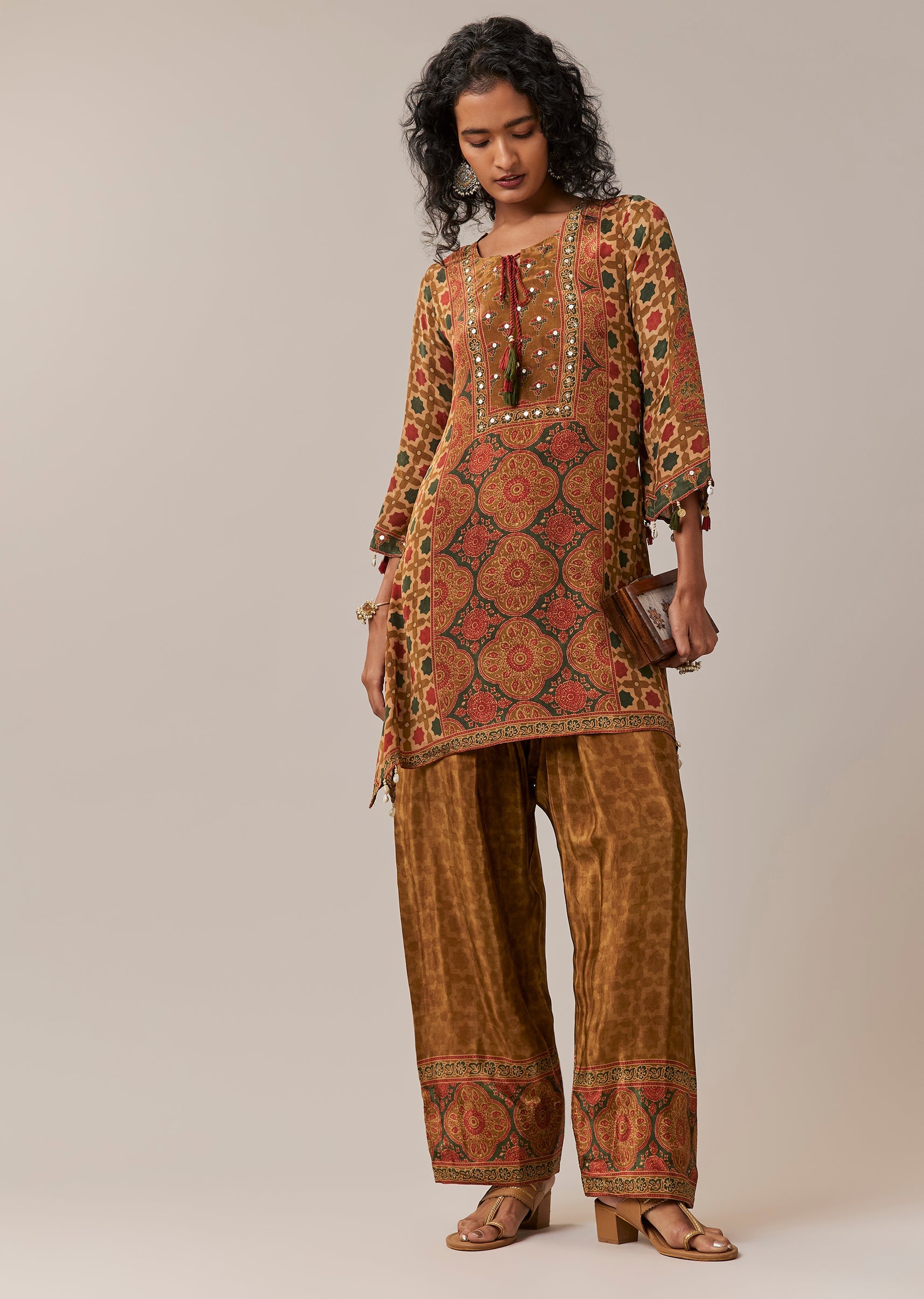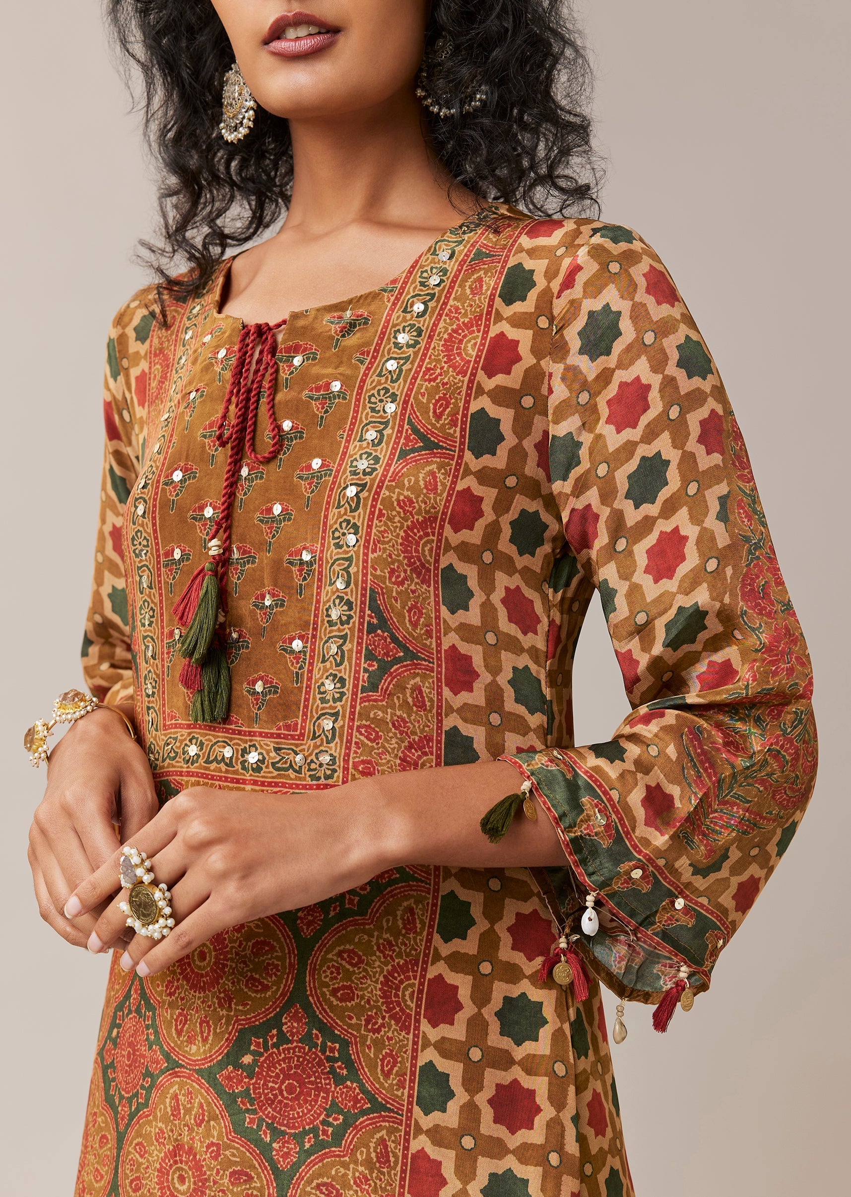Playful prints meet subtle sparkle in this printed kurta set, designed for effortless festive dressing. Crafted in lightweight crepe, the kurta is accented with delicate sequin work that adds a... More Product Details