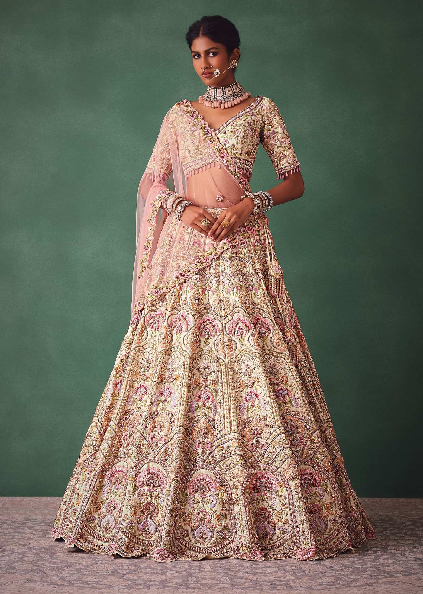 Off White Bridal Lehenga Blouse And Dupatta With Multi Colour Thread Work