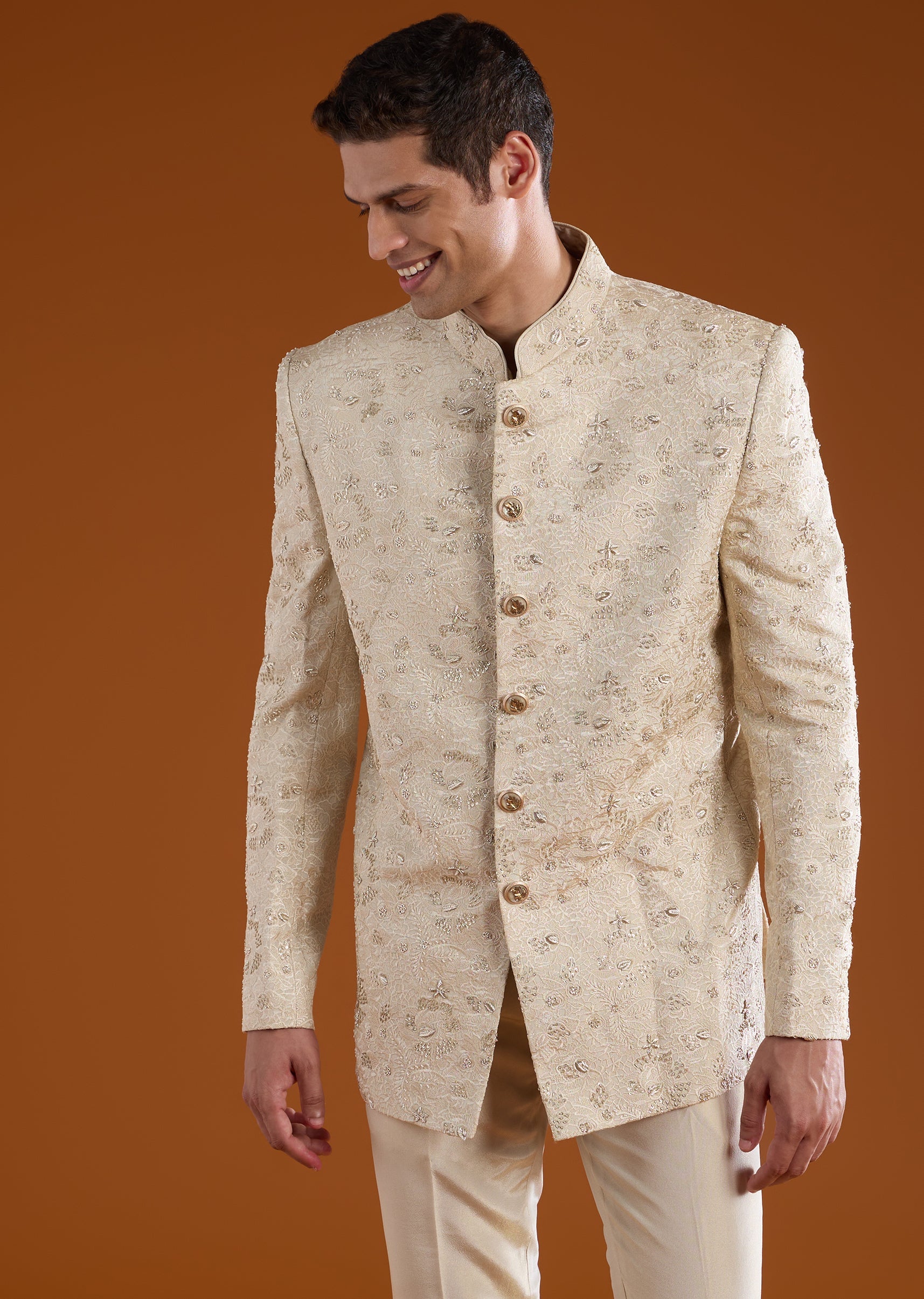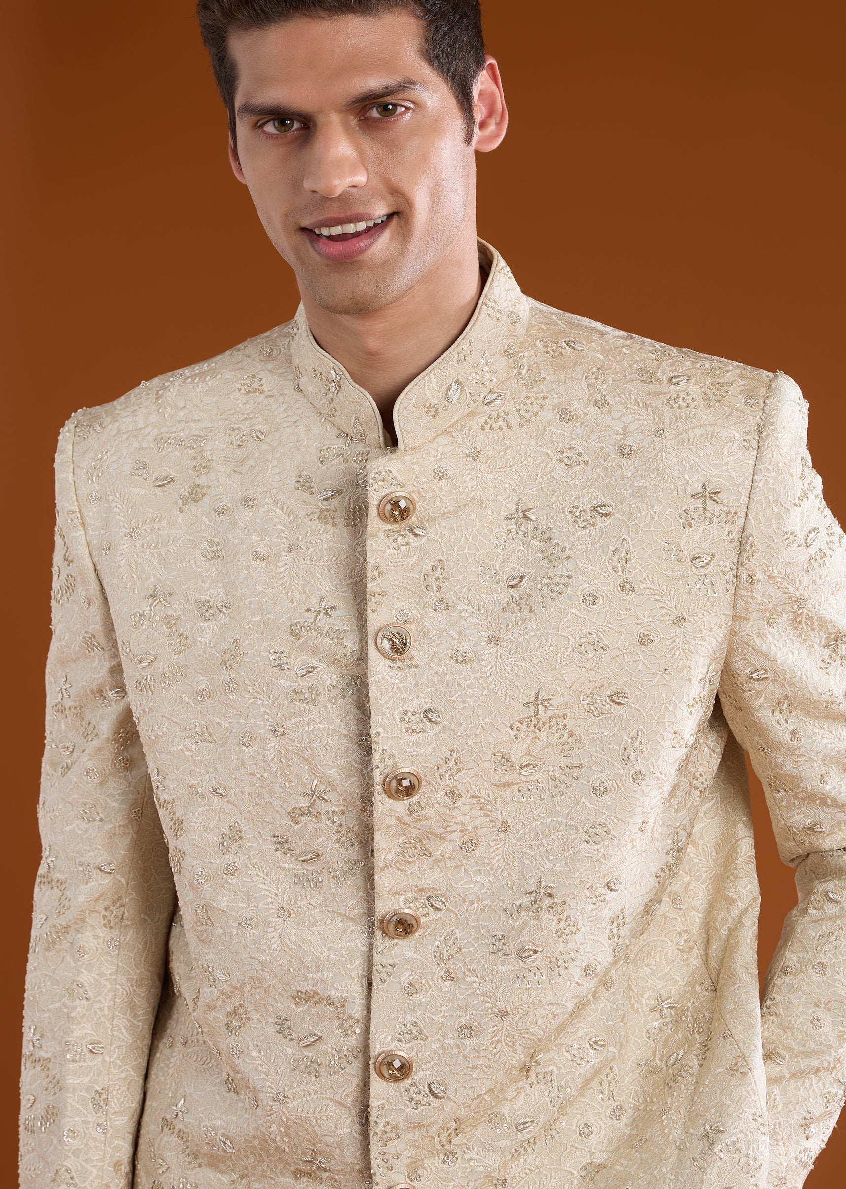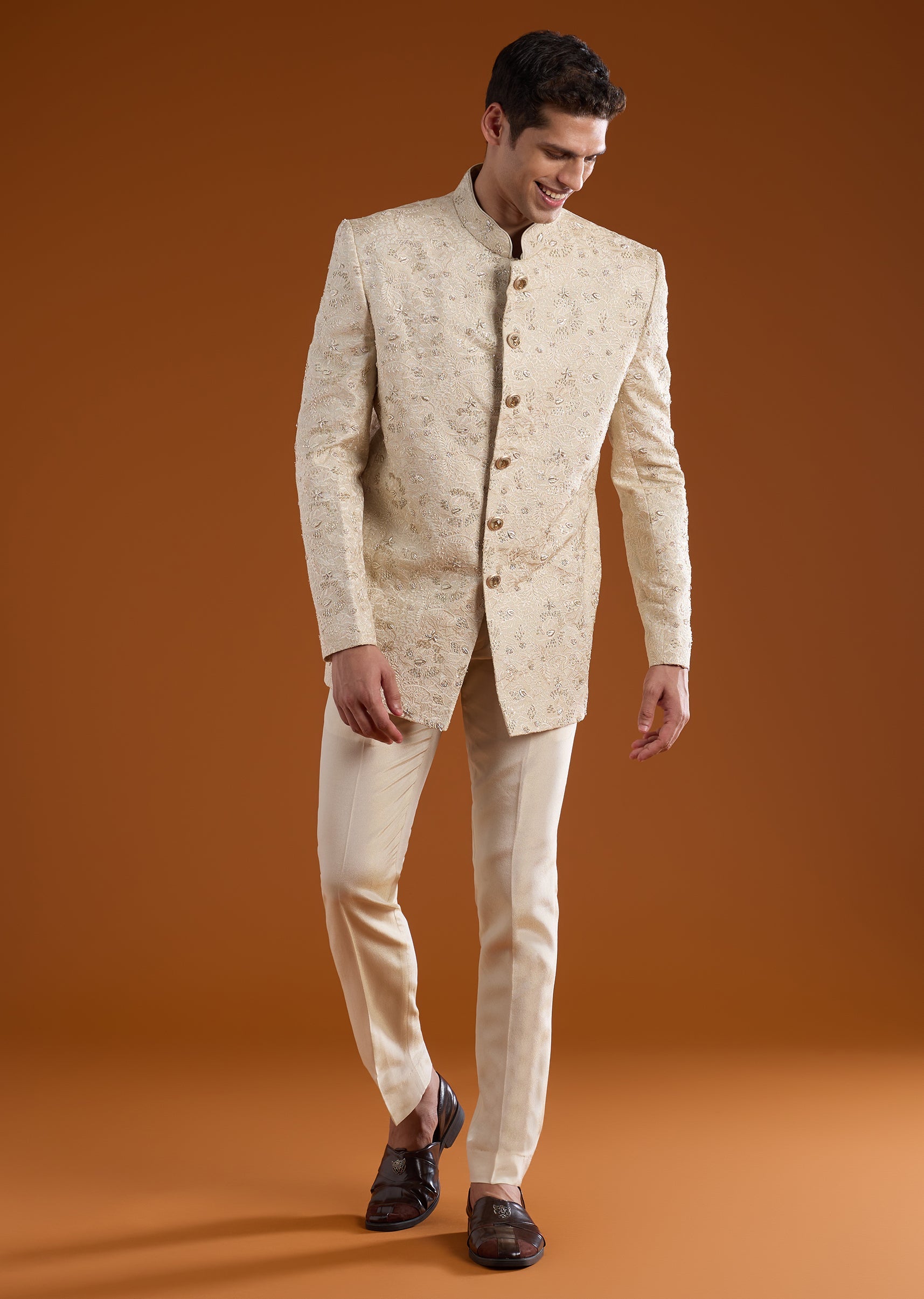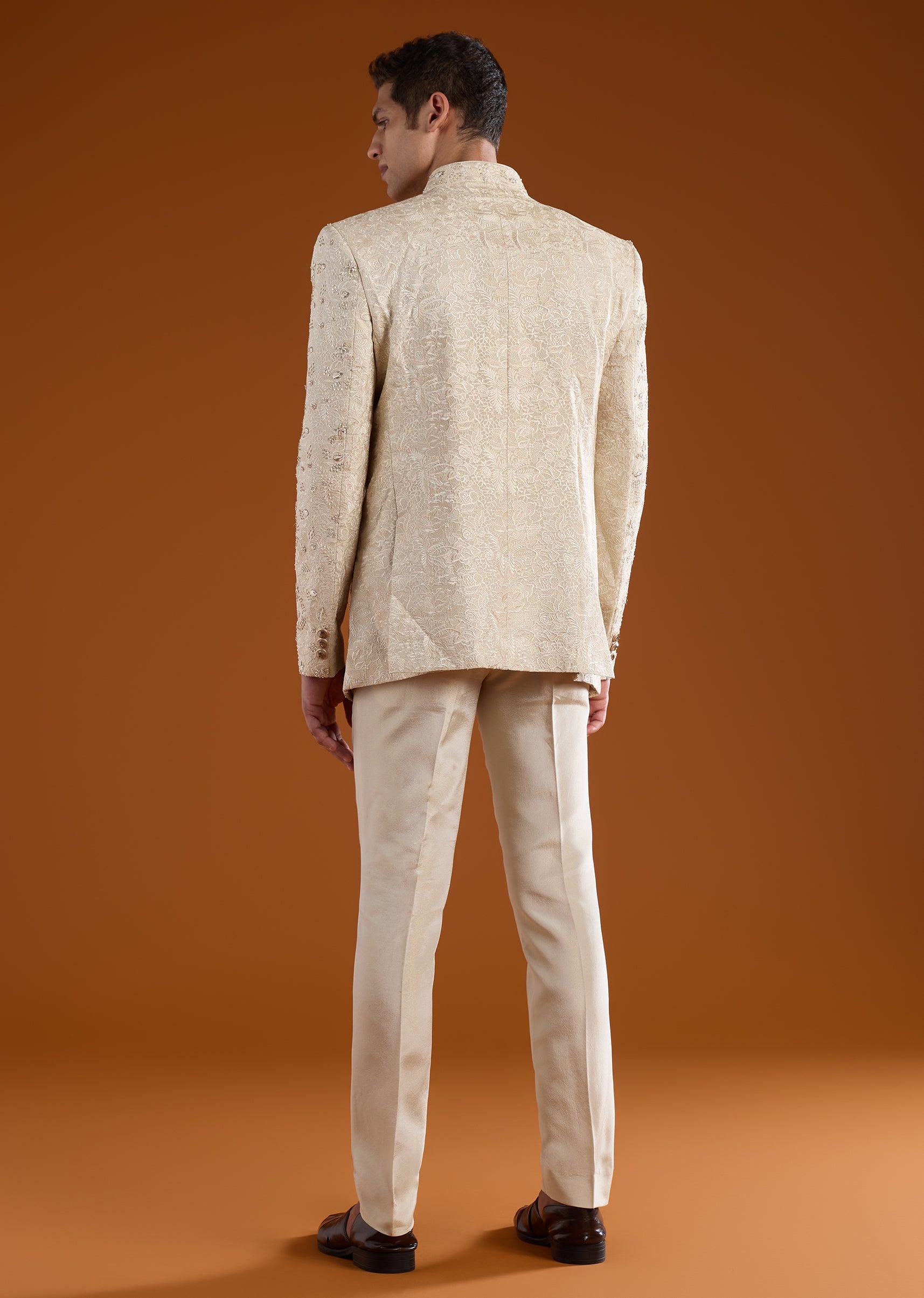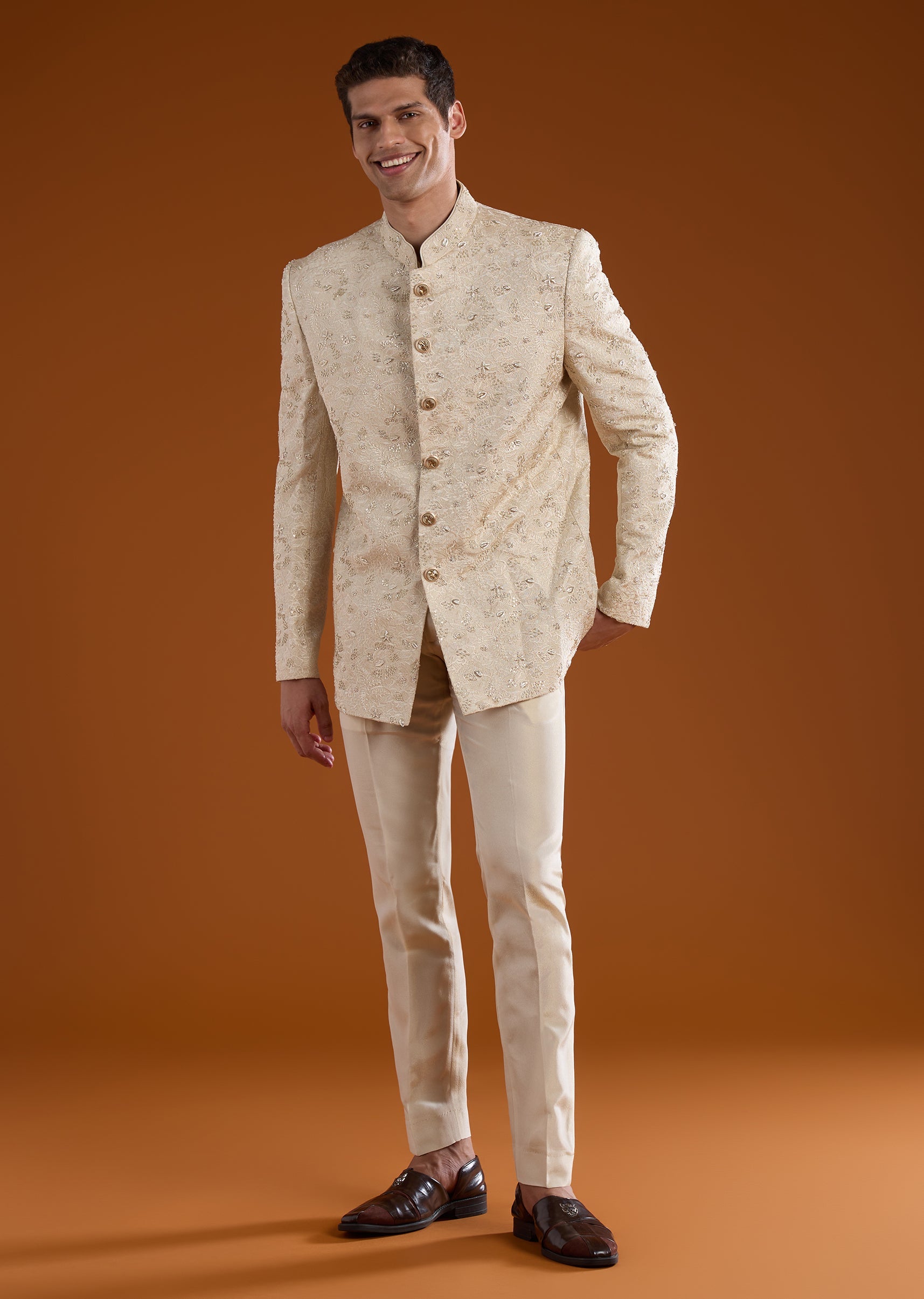 Off White Jacquard Silk Embroidered Jodhpuri Set