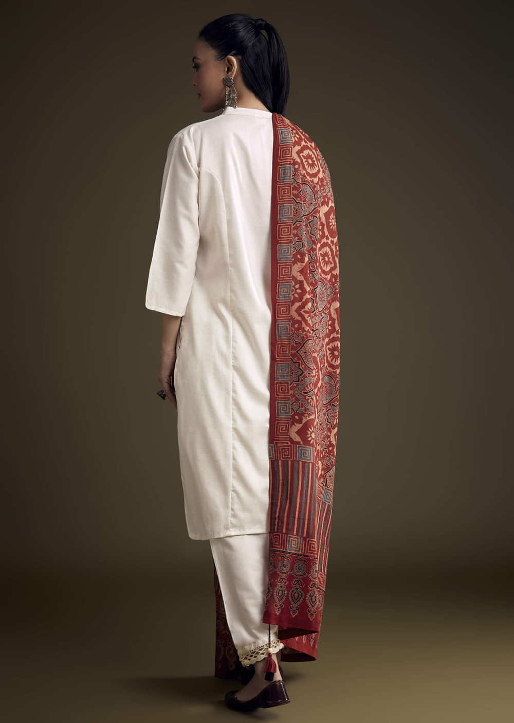 Off White Khadi Dhoti Suit With Red Hand Dyed Ajrakh Dupatta