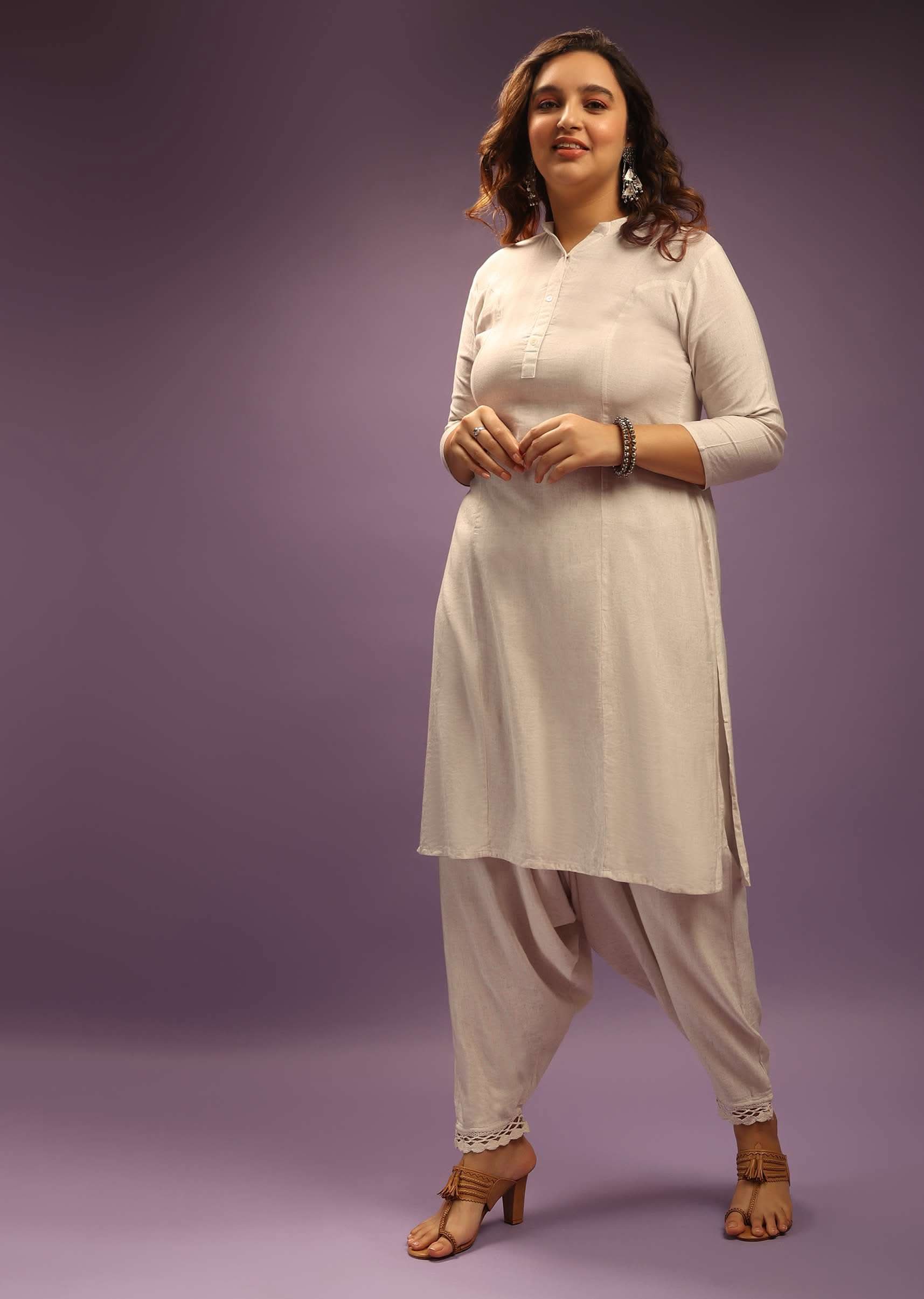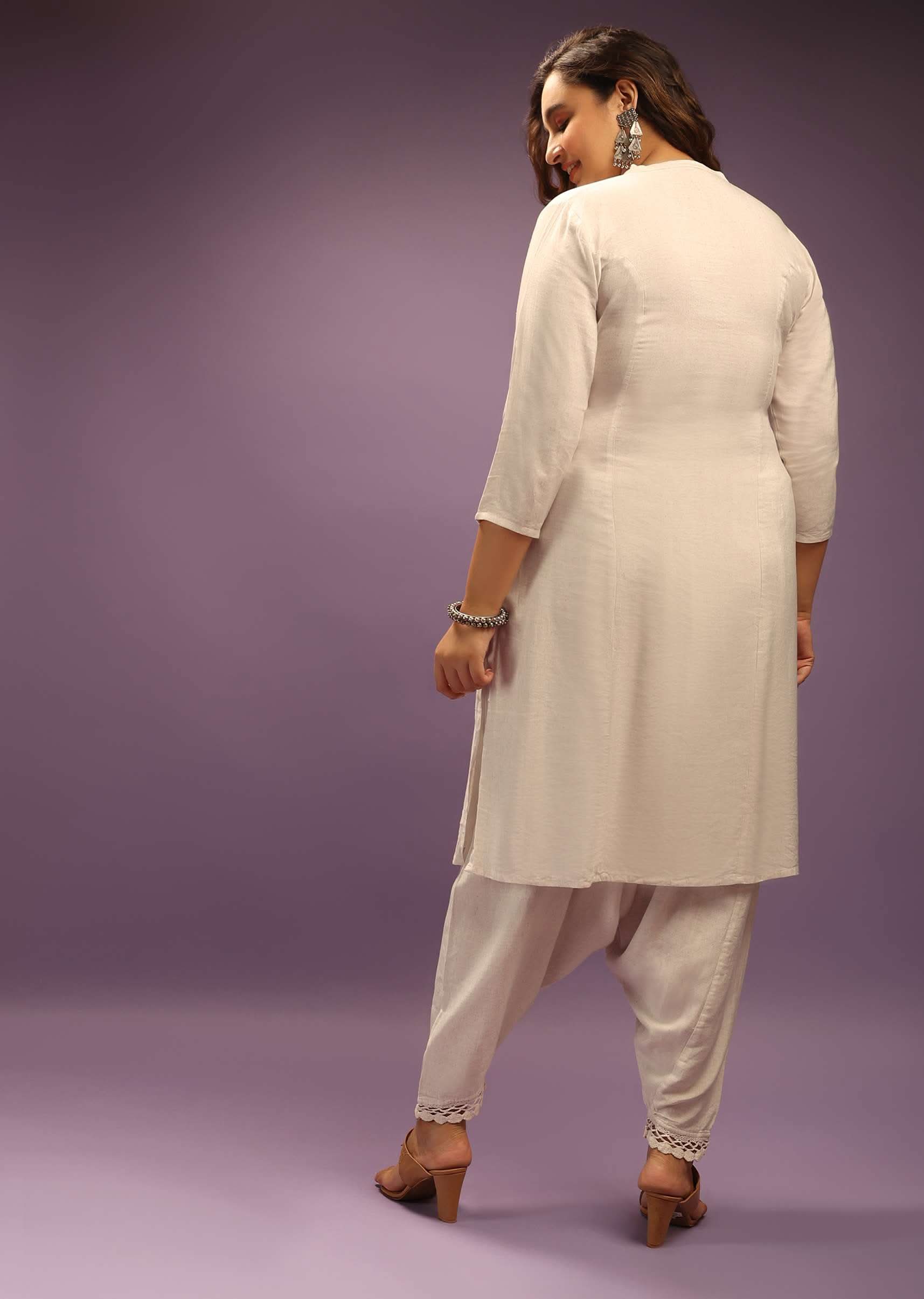 Off White Kurta Set In Cowl Pants Without Dupatta