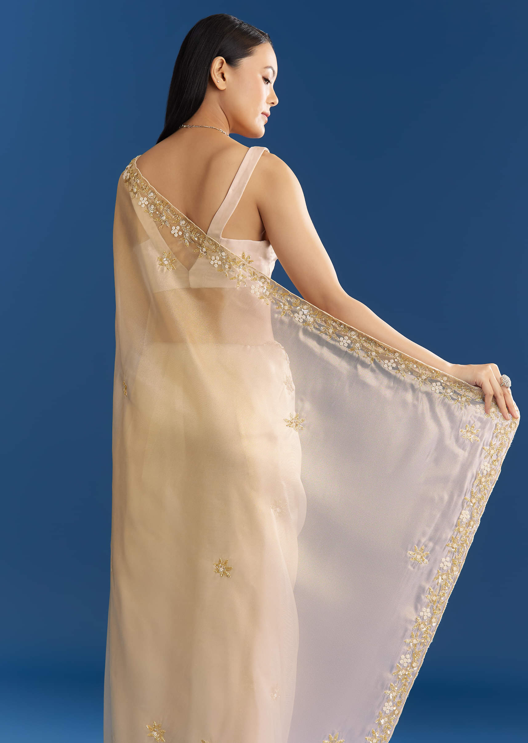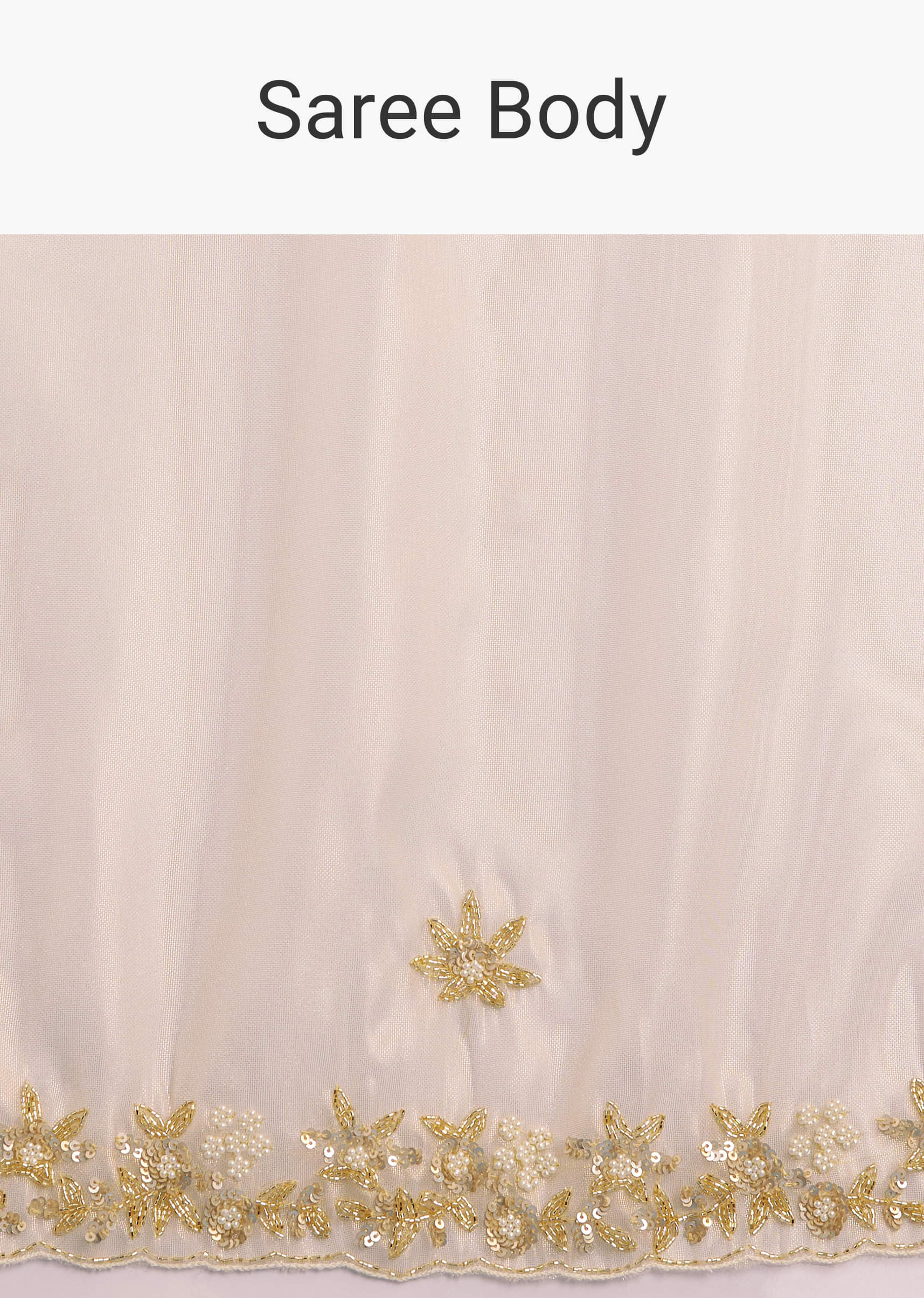 Off White Organza Tissue Saree With Beaded Scallop Border