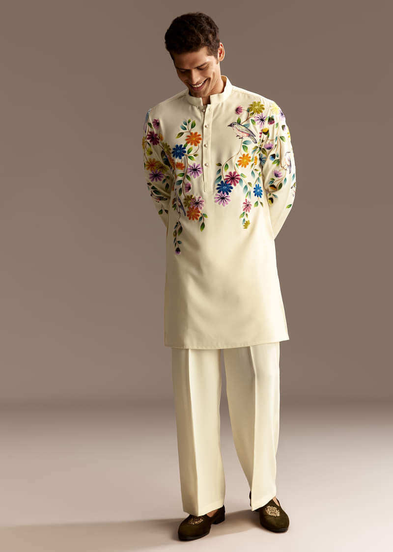 Sophisticated and serene, this cream kurta set blends patchwork detailing with a timeless palette. An elevated essential for understated elegance. Awarded as the Most Trusted Brand, we're delivering styles you love, just as promised.