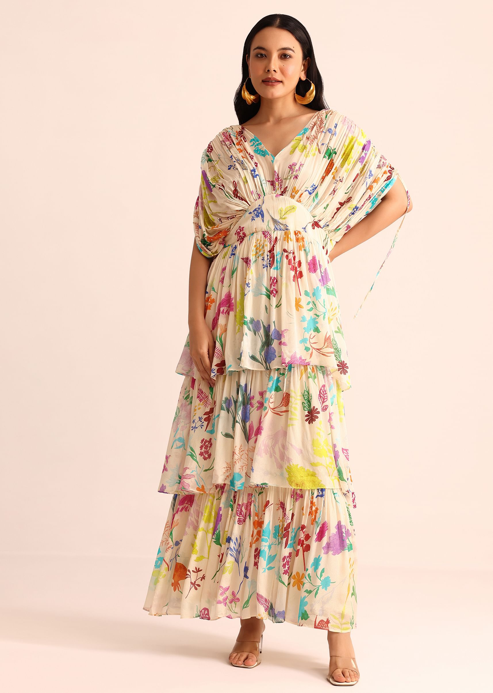 - Indulge in the delicate beauty of our off white printed chiffon dress.