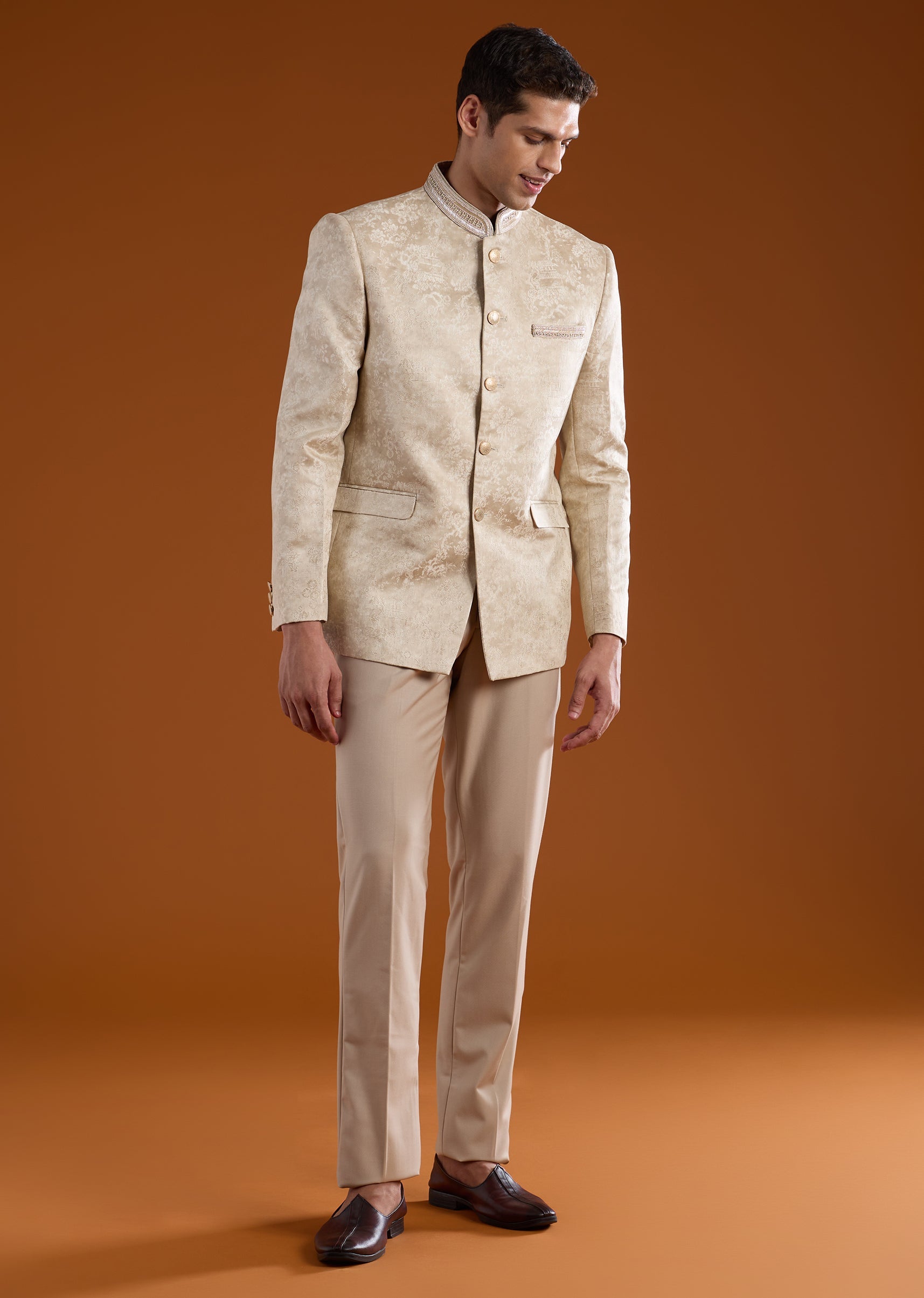 Off White Viscose Jodhpuri Set with Thread Embroidery