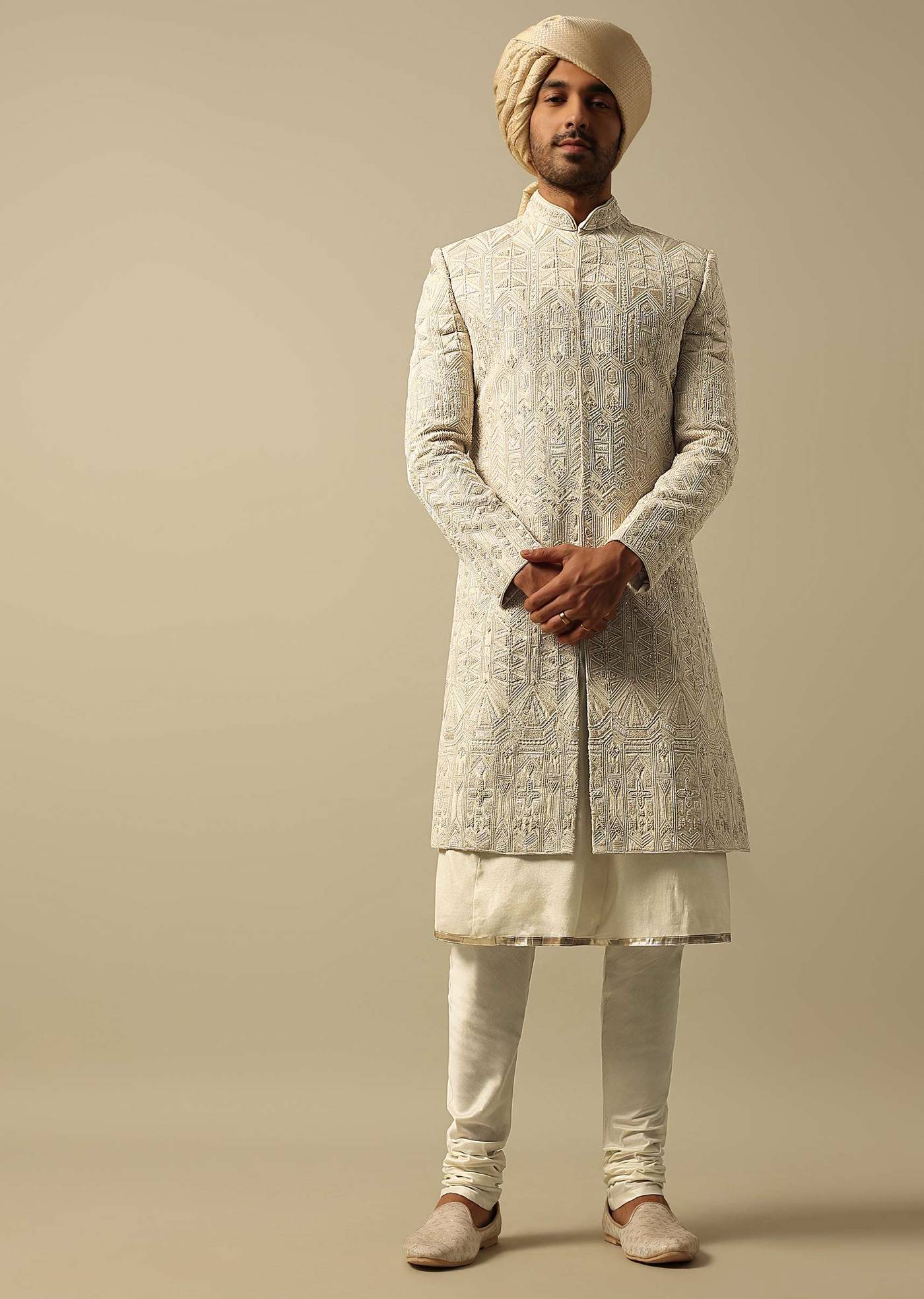 • Make a regal statement on your wedding day with this men's wedding sherwani.