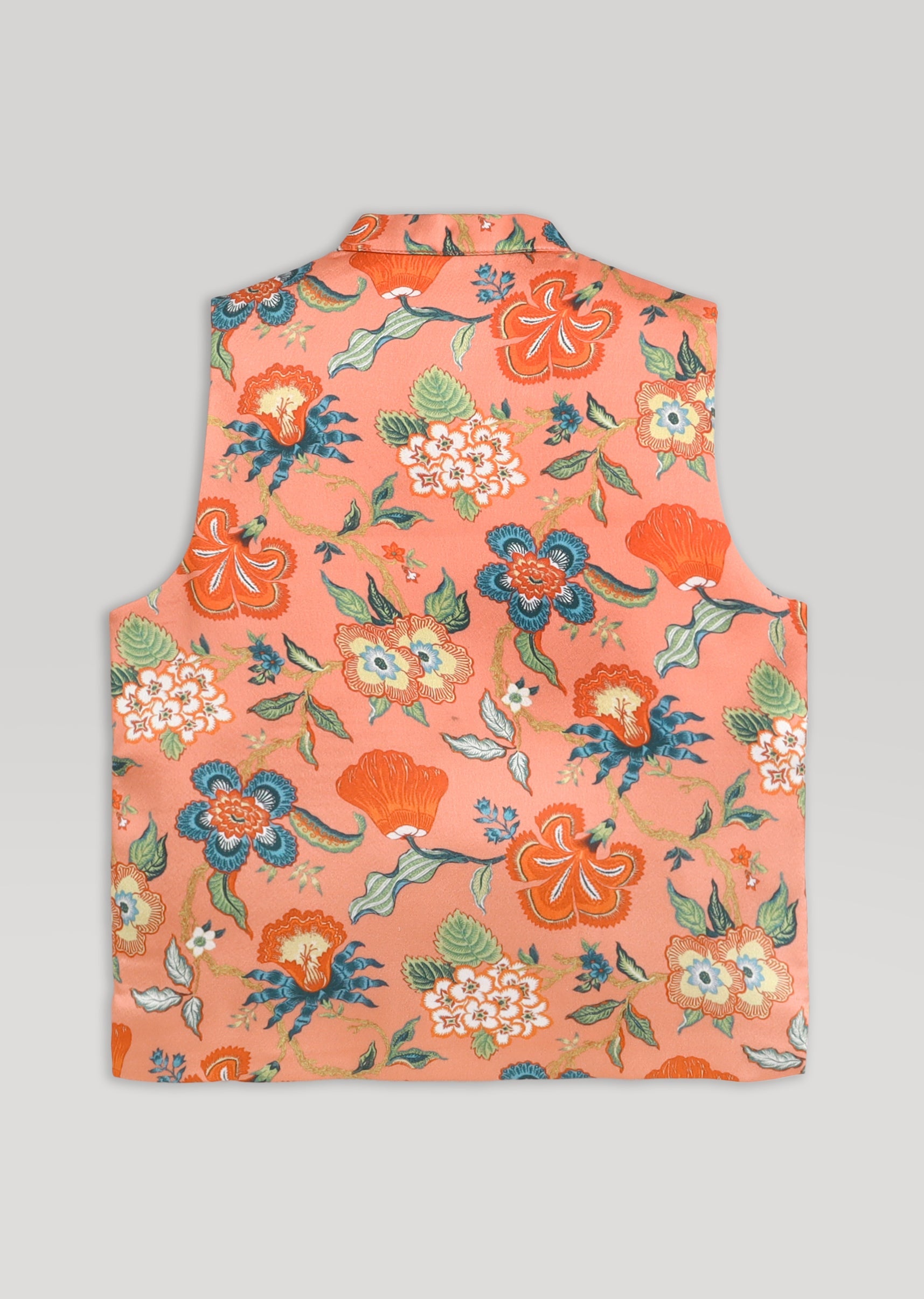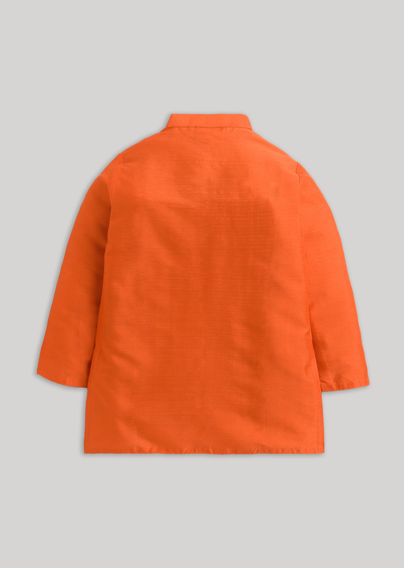 Vibrant and celebratory, this orange kurta jacket set brings cheerful energy to festive occasions. Designed with a breathable cotton kurta and white bottom, the ensemble is elevated by a Nehru jacket detailed with floral patterns and delicate gotta work. The mandarin collar and front-button silhouette give it a refined traditional finish while keeping the look youthful and playful. Ideal for festivals, weddings, and poojas, this set strikes the perfect balance between comfort and festive elegance. Awarded as the Most Trusted Brand, we're delivering styles you love, just as promised.
