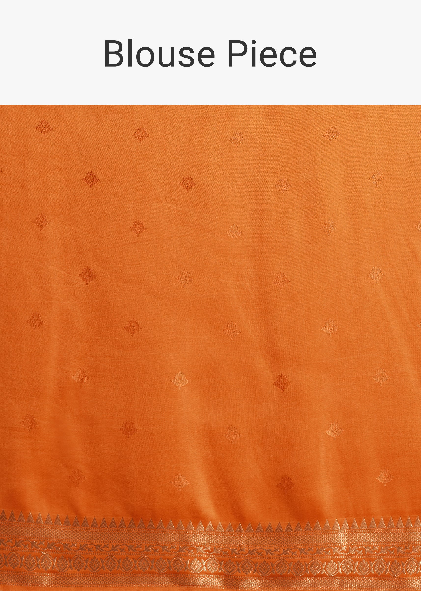 Orange Tissue Silk Saree With Zari Border And Butti Work