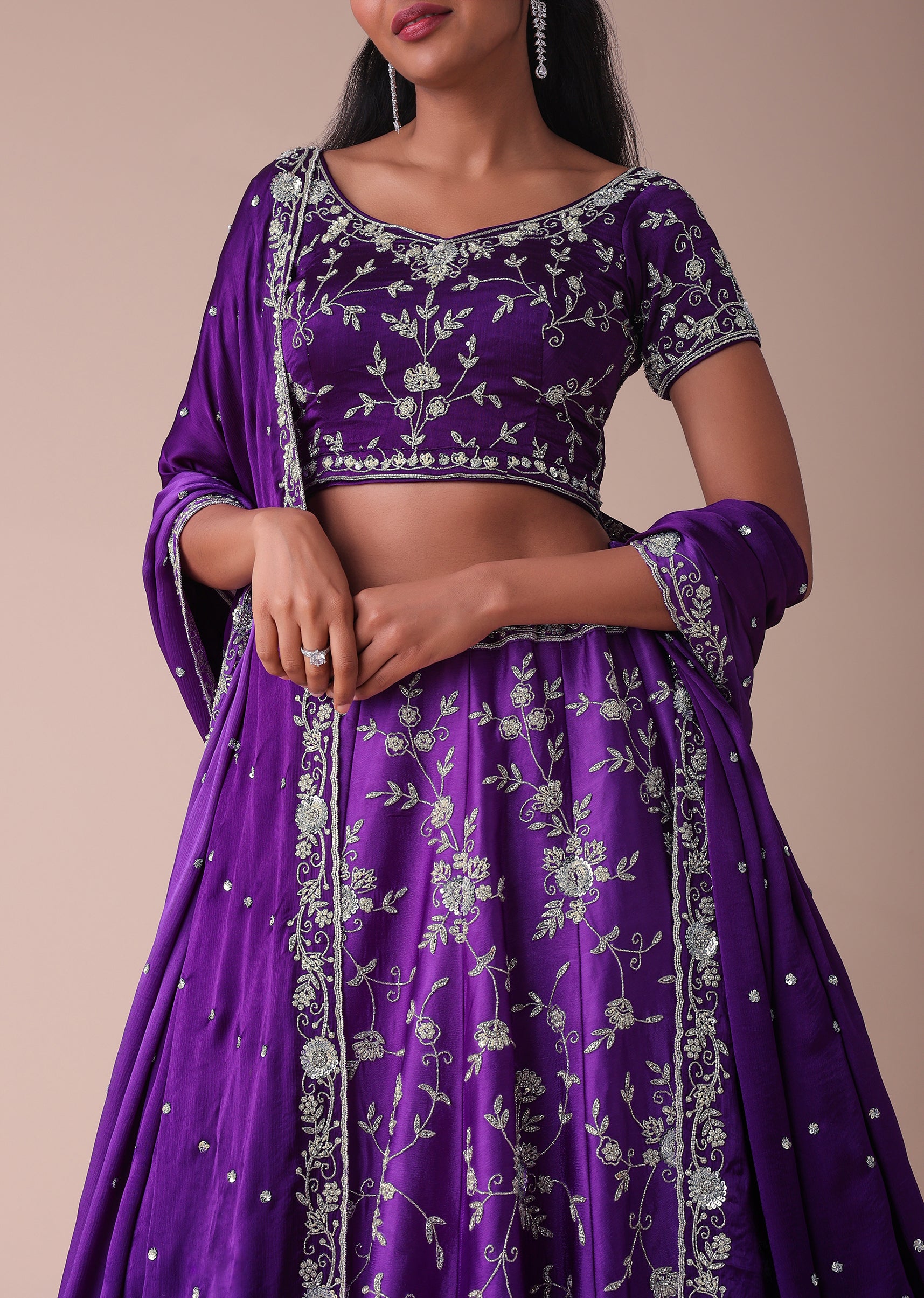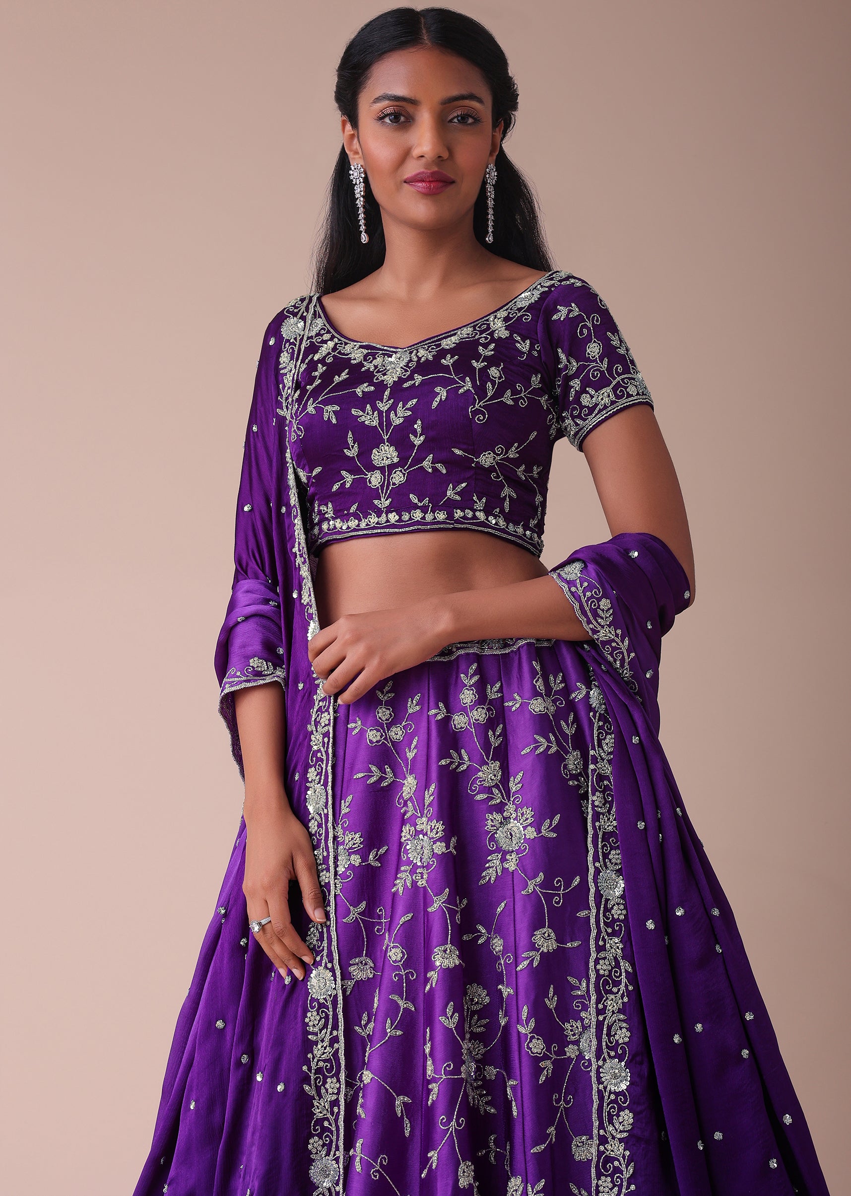 - A gorgeous pansy purple ombre lehenga set fabricated in cotton silk with cut-dana, sequins, and beads embroidery.