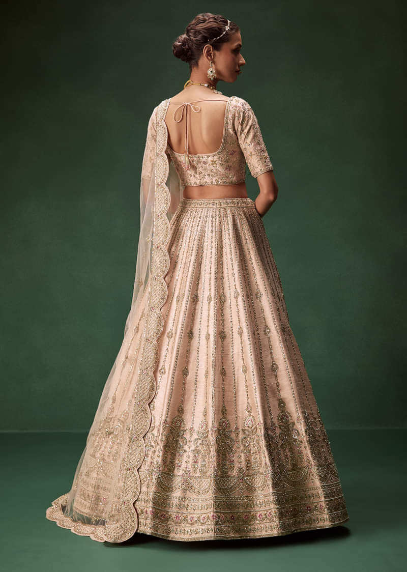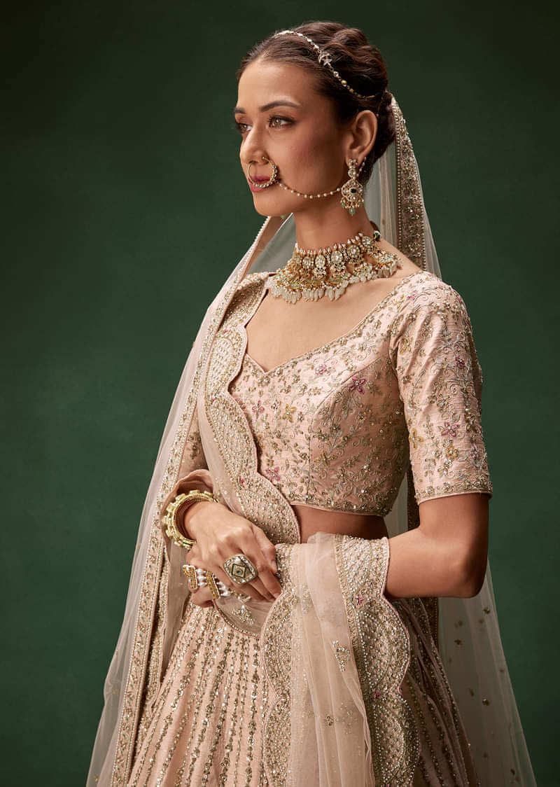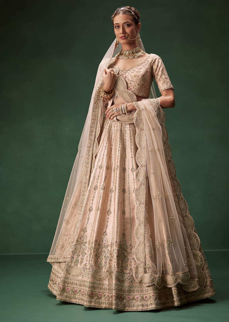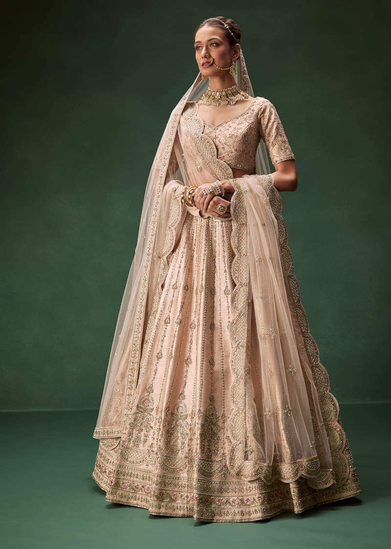Pastel Pink Bridal Lehenga With Fully Embroidered Blouse And Layered Dupattas
