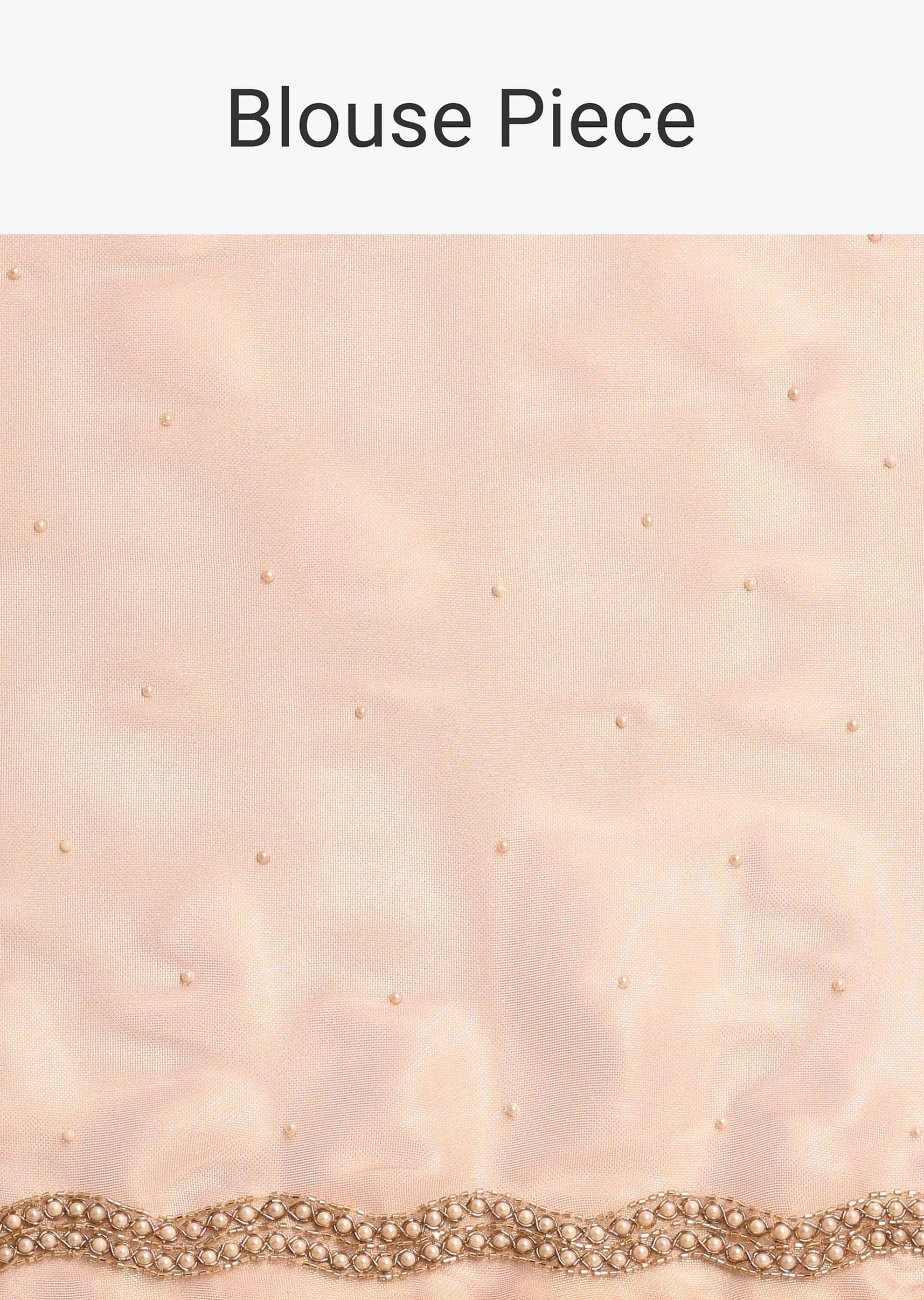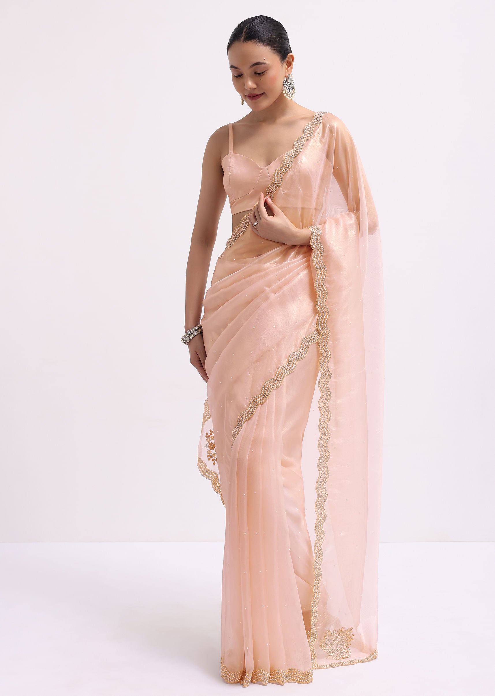 Peach Cutdana Embroidered Tissue Saree With Unstitched Blouse