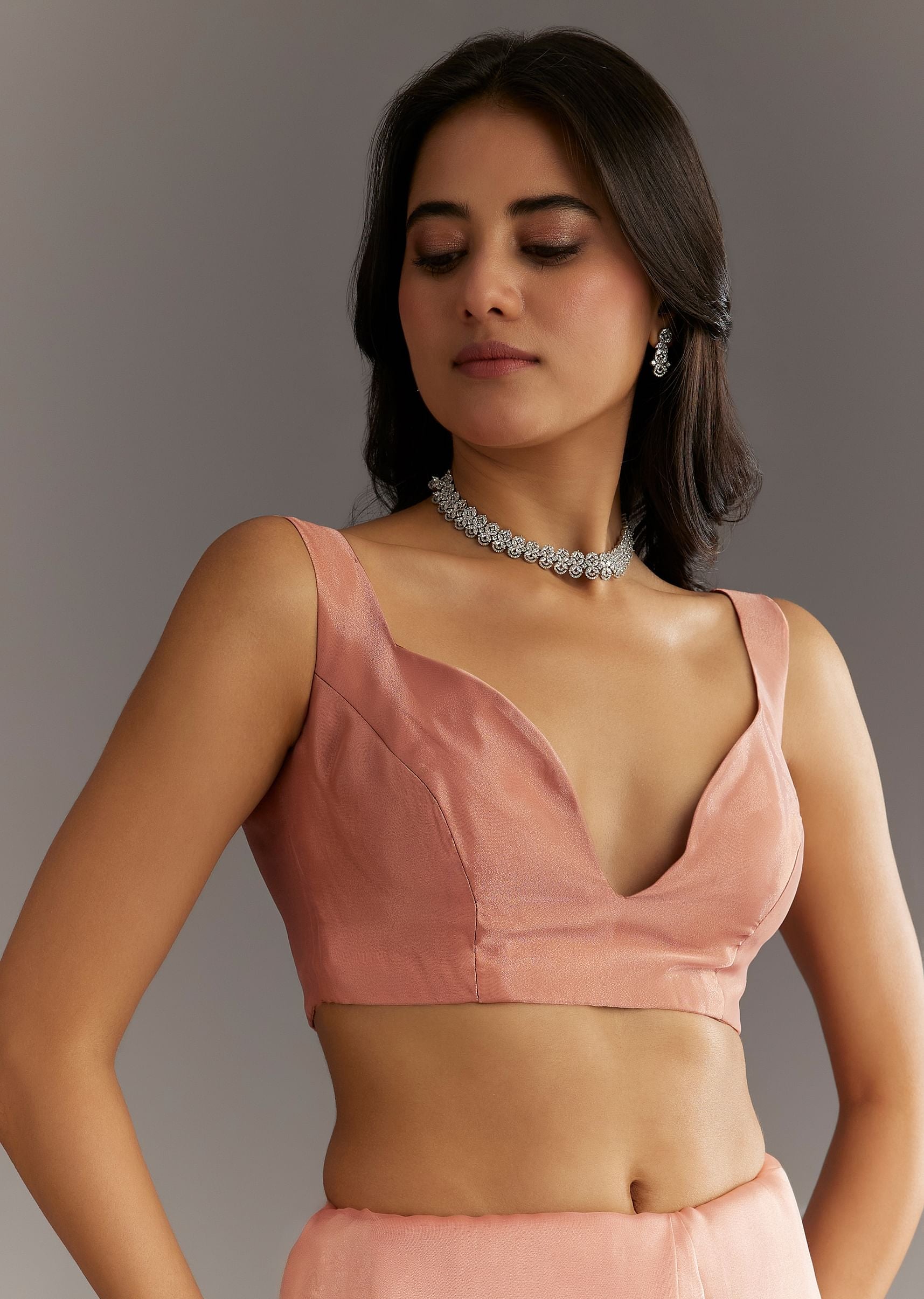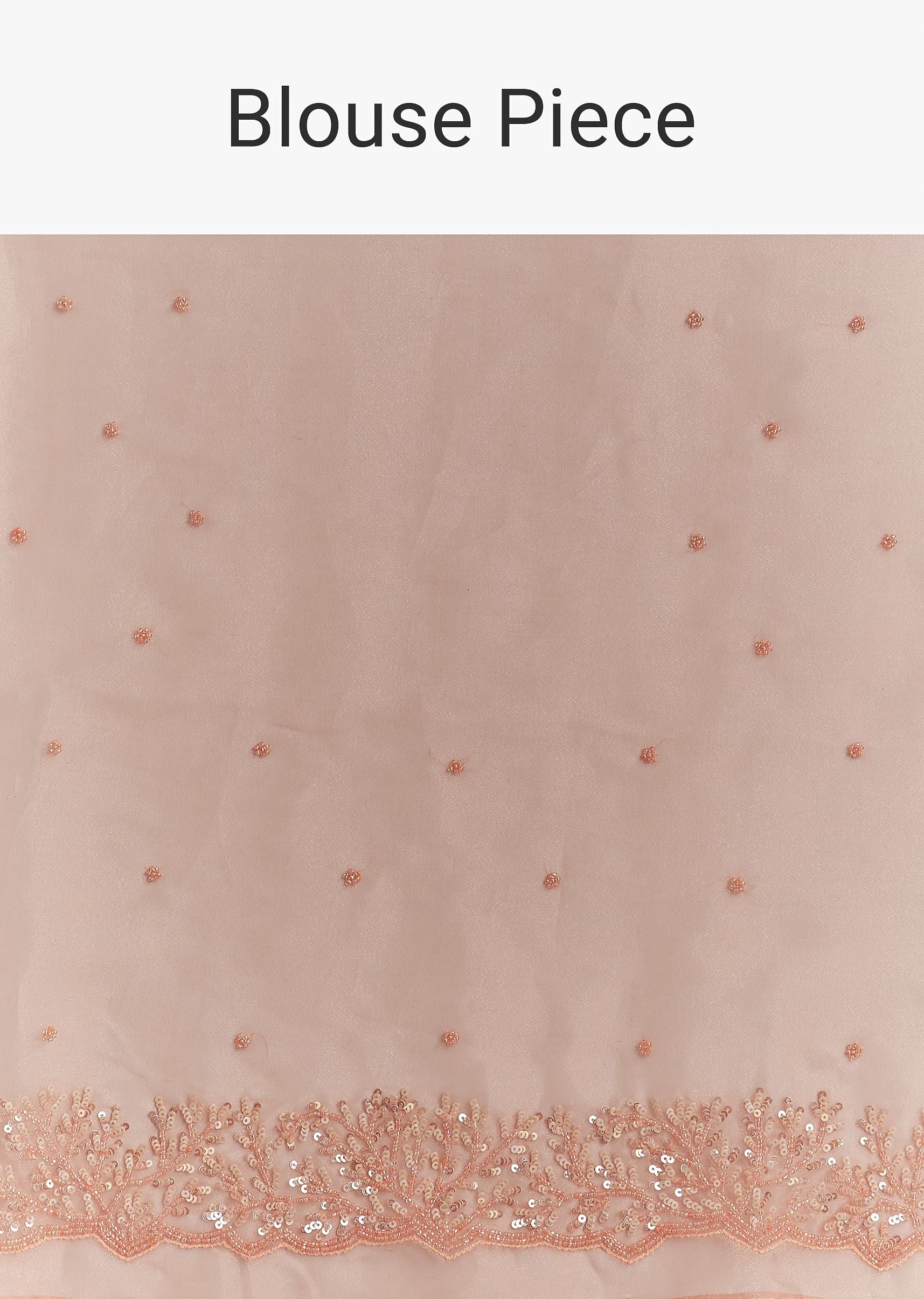 Like peaches and petals twirling this organza saree enchants with bead and sequin embroidery and a soft scallop border—made for moon dances.Awarded as the Most Trusted Brand we're delivering styles you love just as promised.