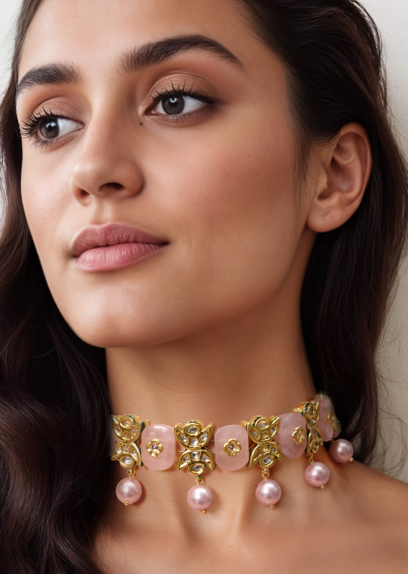 A peach fusion bead drop necklace featuring delicate peach-toned beads and intricate detailing, blending modern charm with traditional elegance. Perfect for adding a soft and graceful touch to bridal, festive,... More Product Details