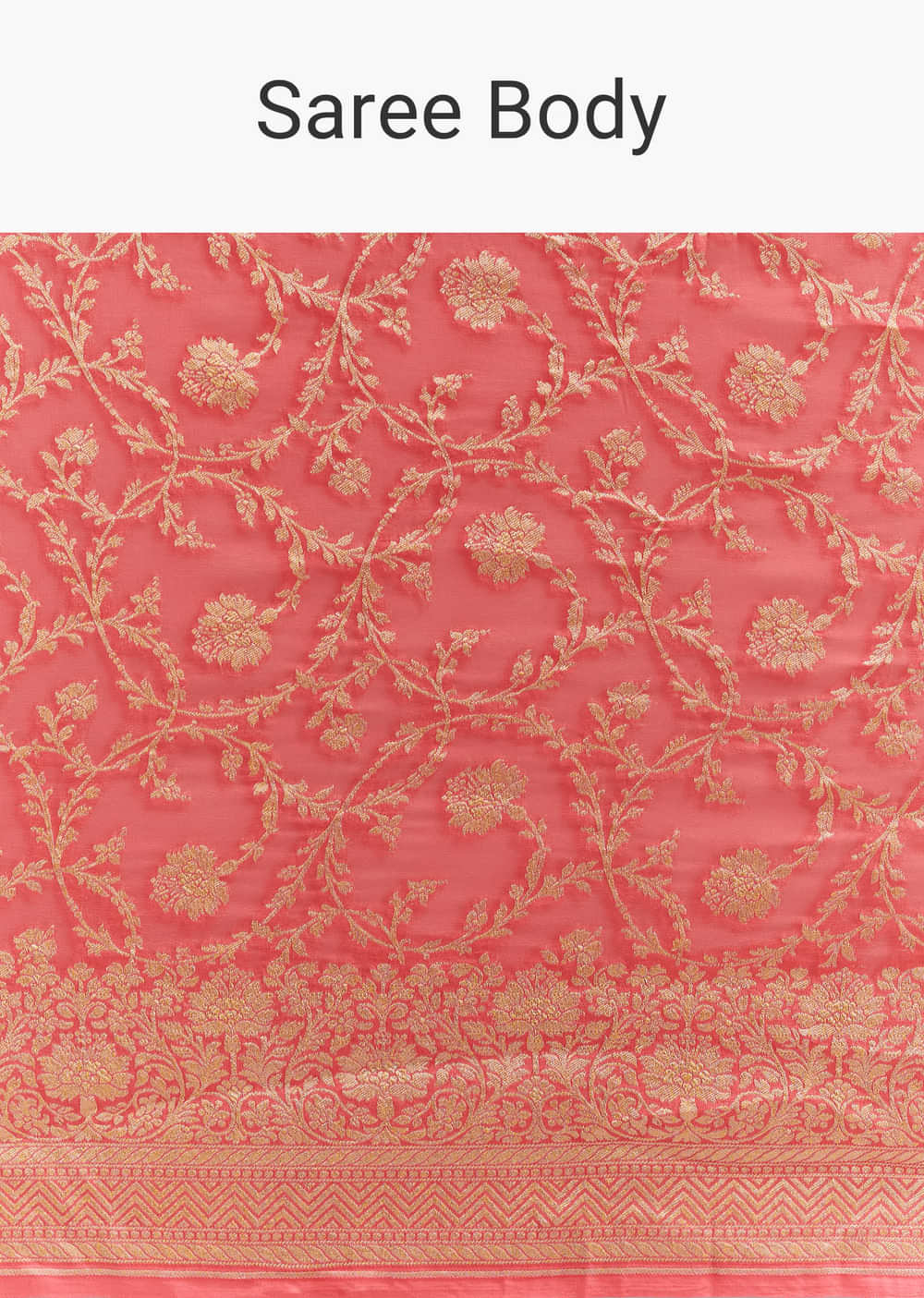 Peach Georgette Woven Saree With Floral Jaal And Heavy Border