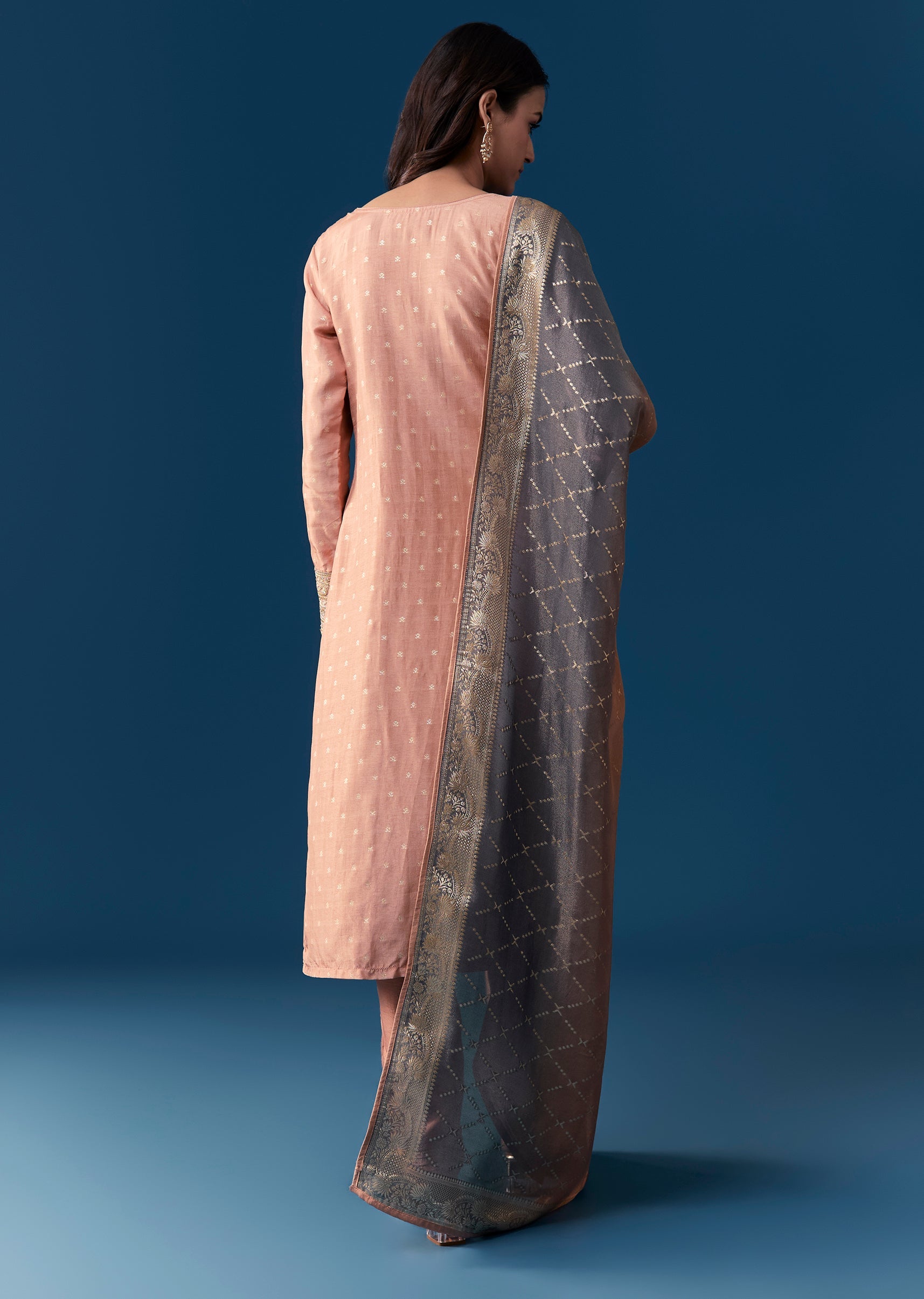 Elegant and understated this pastel peach kurta set is crafted in a straight silhouette that brings together simplicity and refined festive detailing. The kurta is adorned with intricate zardosi and... More Product Details